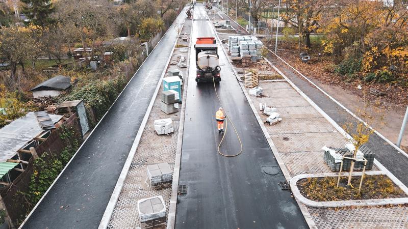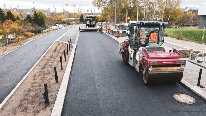Na przebudowywanej ulicy Bożeny w Szczecinie, prowadzącej do Fabryki Wody, jest już nowa nawierzchnia jezdni. Prace budowlane zmierzają ku końcowi.