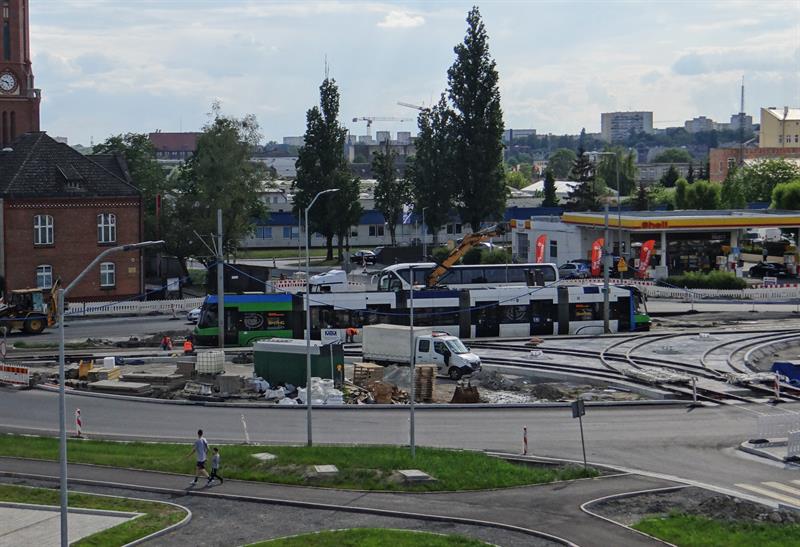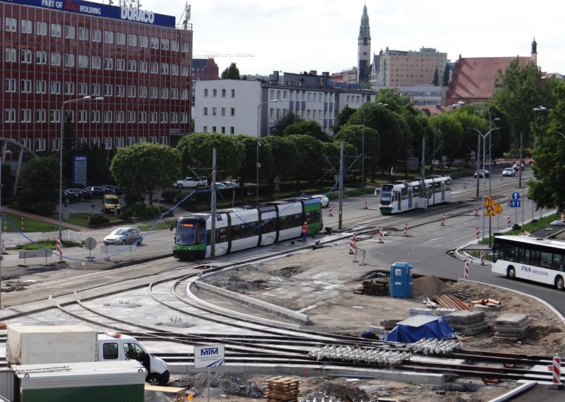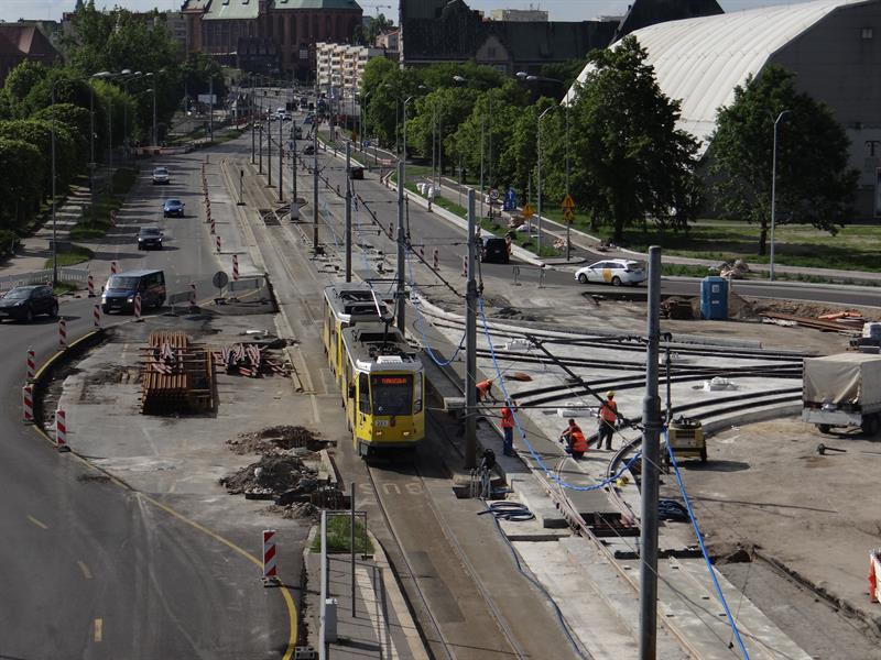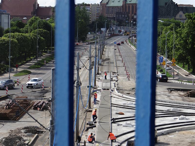 Firma Budowlano-Drogowa MTM S.A., wykonawca inwestycji, wraz z podwykonawcami nie zwalniają tempa i zgodnie z wcześniejszymi zapowiedziami właśnie kończą przebudowę odcinka toru dla tramwajów od wysokości estakad Trasy Zamkowej za nowe rondo Portowców. Z niego od strony ulic św. Floriana i Władysława IV poprowadzone zostały relacje skrętne nowych torów pod odnogę przyszłego szlaku dla tramwajów w kierunku wspomnianej ul. Władysława IV i dalej przez mający powstać nad Odrą Zachodnią most Kłodny łączący Łasztownię z lewobrzeżem. Teraz do wykonania pozostała rozbiórka odcinka drugiego toru i zastępienie go nowym z dowiązanymi też rozjazdami. Tego, który prowadzi do mostu Portowego nad Parnicą, a którym przez kilka tygodni tramwaje kursowały w obu kierunkach i nawet kilka razy udało im się spotkać w tym czasie jednocześnie na tym samym torze, bo niewłaściwie zadziałała sygnalizacja świetlna.