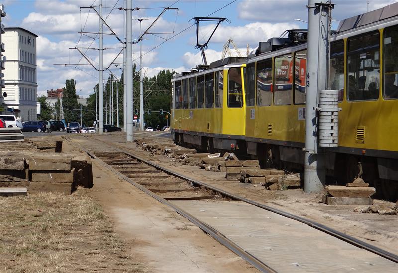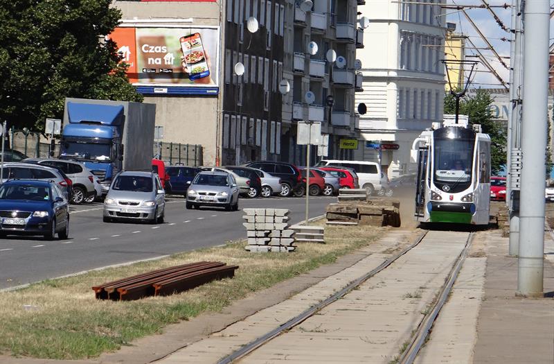 Trwają roboty torowe w pasie torowiska dla tramwajów wzdłuż ul. Jana z Kolna w Szczecinie - na jej odcinku od Trasy Zamkowej i skrzyżowaniu. Demontowane są tam stare, zniszczone już płyty. Wymieniane są też na nowe szyny na najbardziej zużytych fragmentach obu torów.