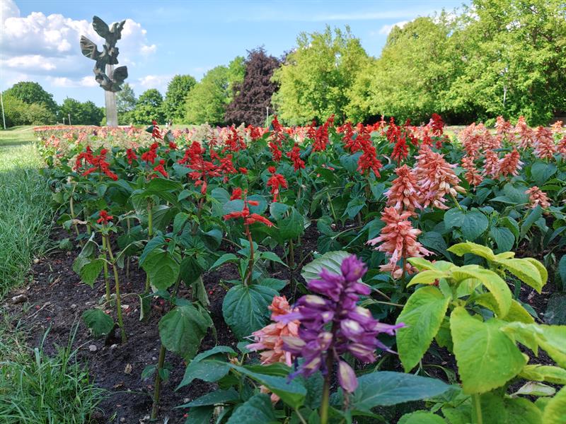 Na kwietniki w reprezentacyjnych punktach Szczecina powracają sezonowe rośliny. Jako pierwsze pojawiły się kwiatowe kobierce przy Pomniku Czynu Polaków. Tworzą je głównie odmiany szałwii błyszczącej, w kolorowych odmianach: białej, czerwonej, fioletowej, łososiowej i wielobarwnej. Kwiaty tworzą geometryczne wzory, przetykane koleusami. Niestety, niewymagające i długo kwitnące rośliny nie tworzą kompozycji tak efektownej, jak ubiegłoroczna, w której królowały fioletowe werbeny patagońskie.