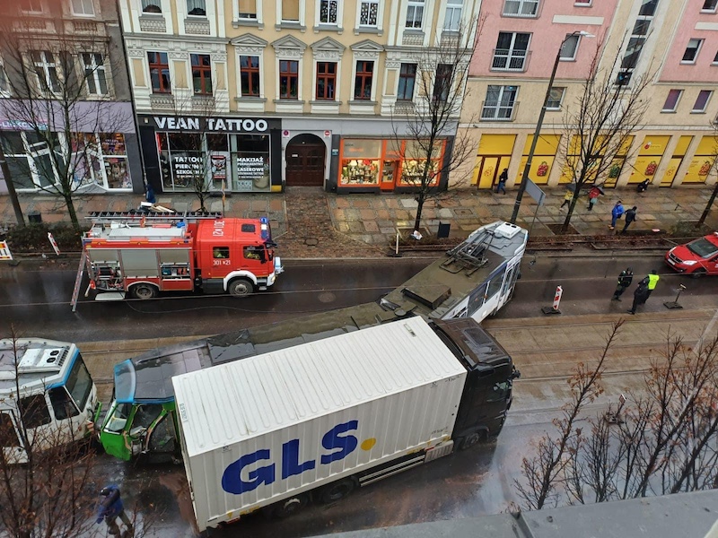 W czwartek 21 grudnia około godziny 9.30 na ulicy Krzywoustego w Szczecinie doszło do zderzenia samochodu ciężarowego z tramwajem linii numer 7. Jedna osoba jest ranna. To pasażerka tramwaju, którą przewieziono do szpitala. Nie ma jednak sytuacji zagrożenia życia i zdrowia.