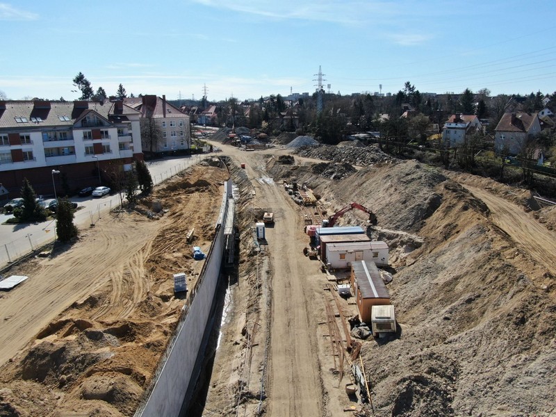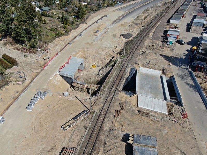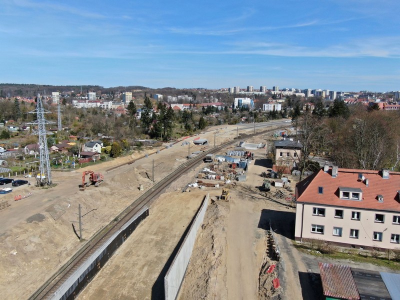 Roboty na budowie węzła Łękno w Szczecinie nie ustają. Robiono m.in. wykopy pod torowisko kolejowe, chodnik i ścieżkę rowerową, wznoszone są nowe wiadukty.