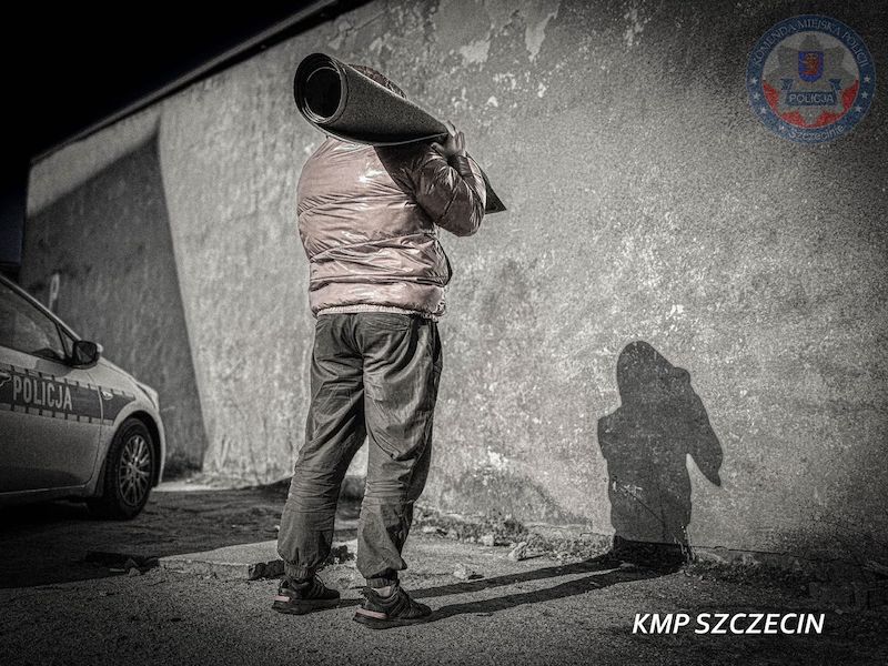 Szczecińscy policjanci z wydziału wywiadowczego podczas nocnego patrolu zauważyli mężczyznę, który niósł dywan i nerwowo rozglądał się na boki. Gdy zobaczył funkcjonariuszy, natychmiast go odrzucił i… zapalił papierosa.