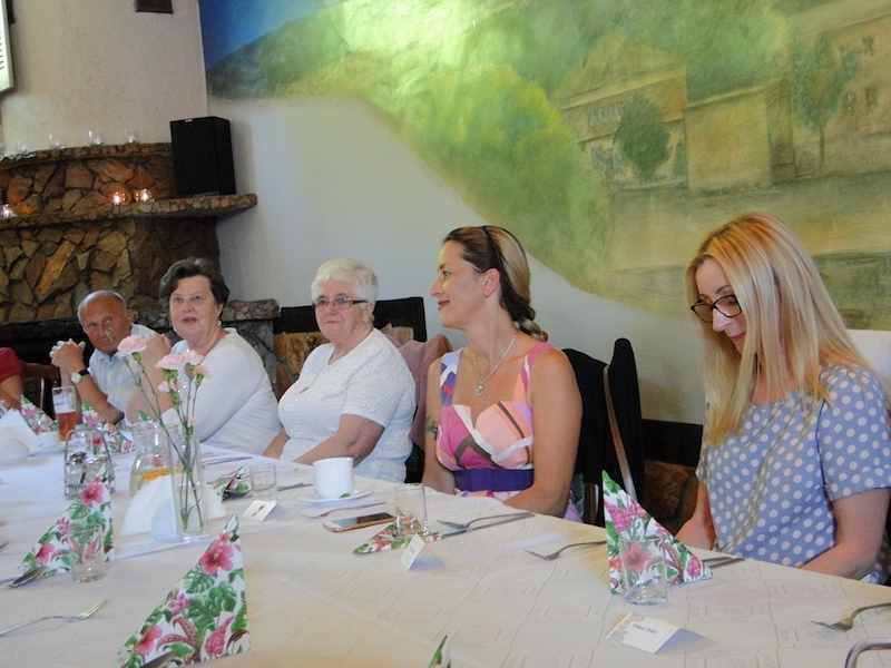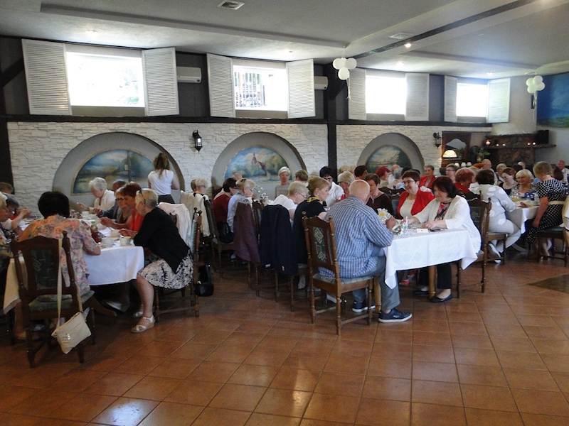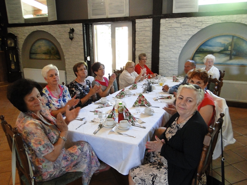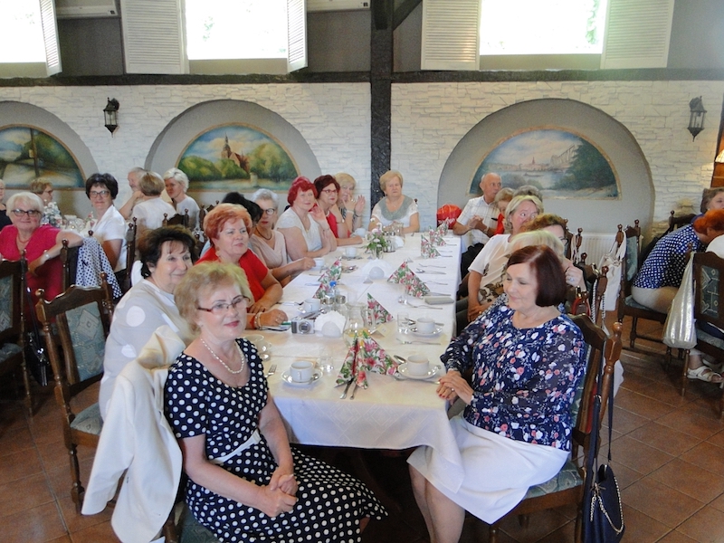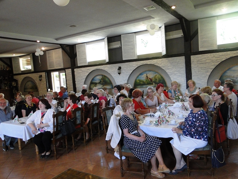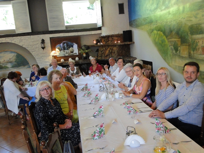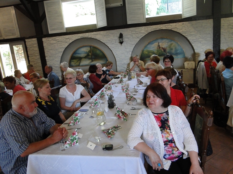 W obiedzie uczestniczyło 70 osób. Oprawę kulinarną spotkań zapewniają miejscowe restauracje. Tym razem goszczono się w „Arkadii”, zaś w skład smacznego menu obiadowego weszły: zupa krem z zielonego groszku z groszkiem ptysiowym, zrazy wołowe z ziemniakami i surówką, na deser były lody z truskawką, i do tego lampka wina, kawa, herbata, soki.