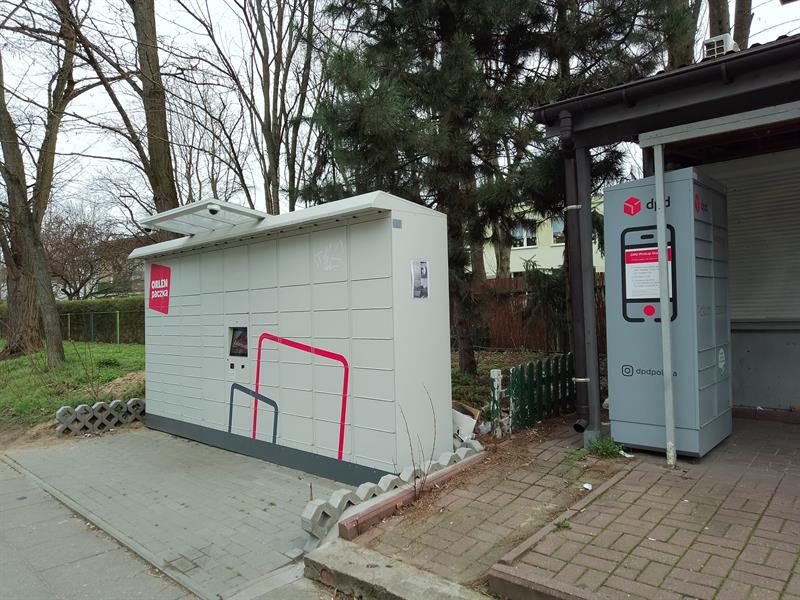 Przy ulicy Włościańskiej na Pomorzanach stoją dwa punkty odbioru i nadawania paczek. Postawiono je tuż przy lokalnym sklepiku, który od jakiegoś czasu jest nieczynny.