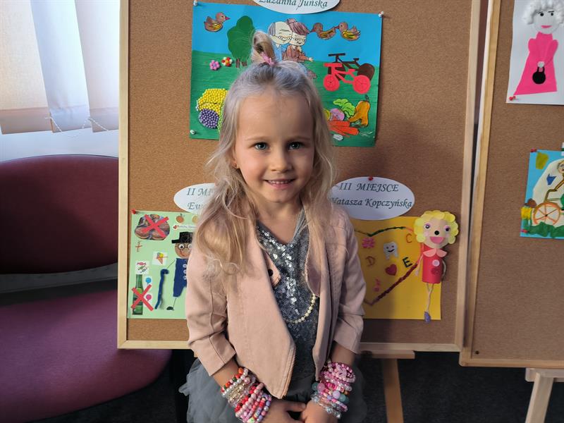 - Zdrowa marchewka, dbanie o zęby, witaminy, serduszko, które oznacza, że się kochają - opisuje swoją pracę 4-letnia Natasza Kopczyńska, która zajęła trzecie miejsce w kategorii przedszkolnej.