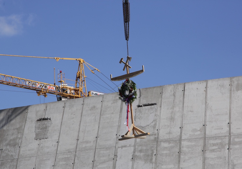 Na budynku Fabryki Wody w czwartek zawisła wiecha. Oznacza to koniec ważnego etapu budowy oraz przejście do kolejnych prac zbliżających do powstania aquaparku w miejscu po słynnej Gontynce.