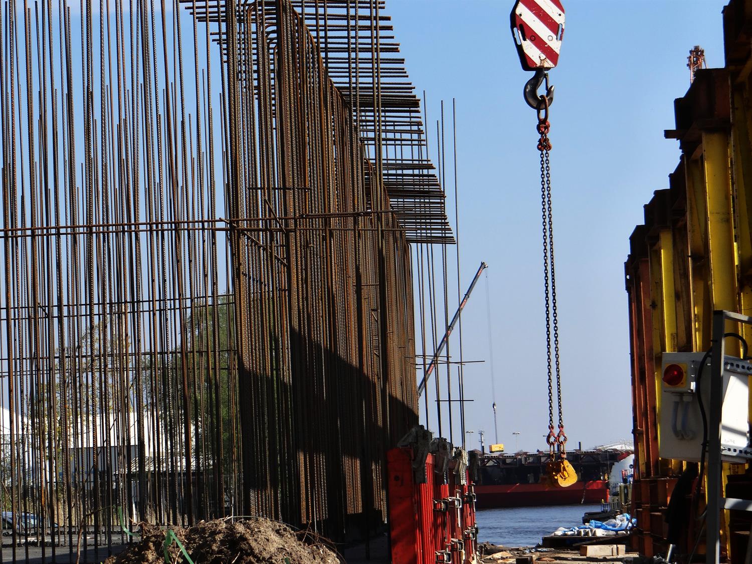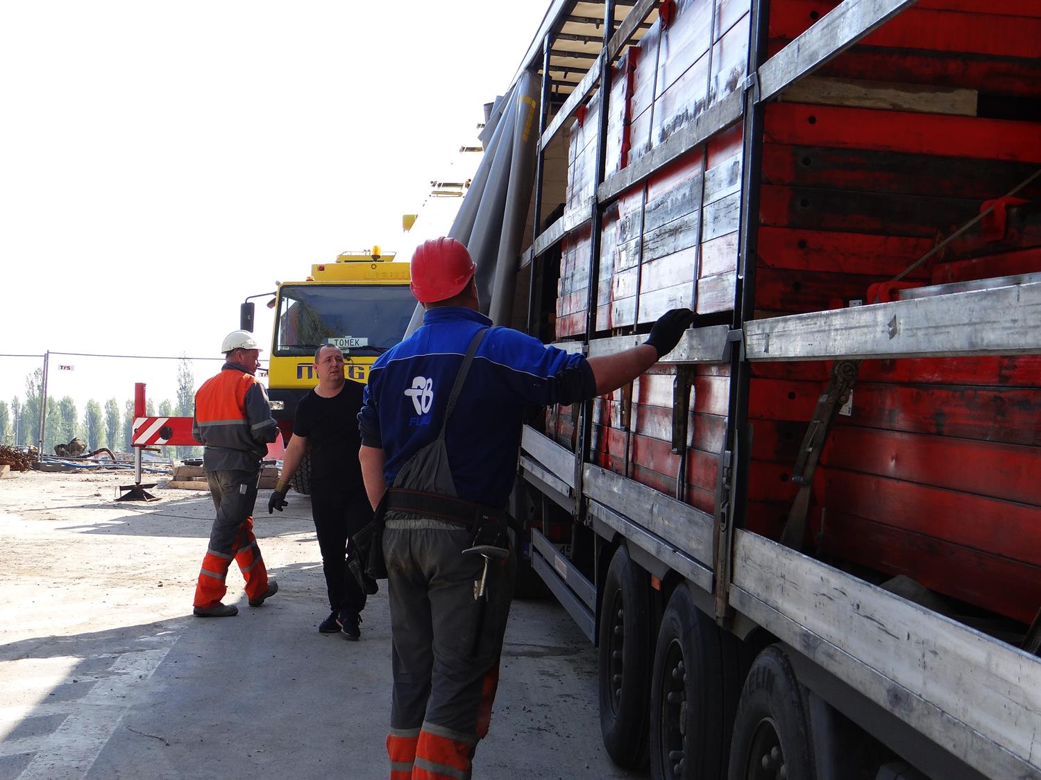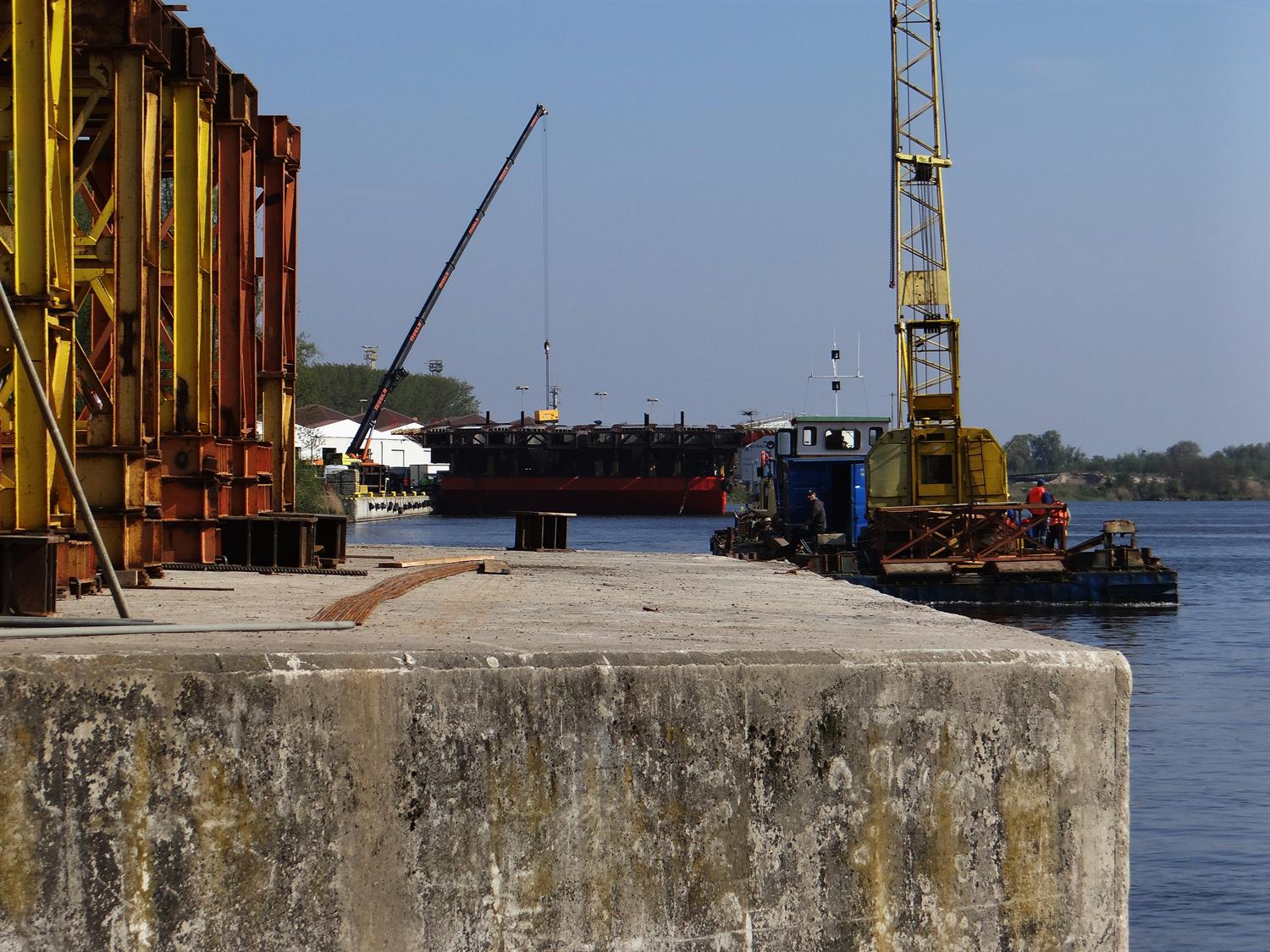 W jaki sposób zostanie przeprowadzone układanie przęseł mostu? – Postawimy ponton w poprzek, następnie zapniemy prętami za krawędzie mostu, za ślizgi, które są pod nim zaczepione i wciągniemy przęsło poprzecznie na przygotowane tory na filarze i na przygotowane tory technologiczne przy przyczółkach, które teraz są podbudowywane – tłumaczył M. Mróz.