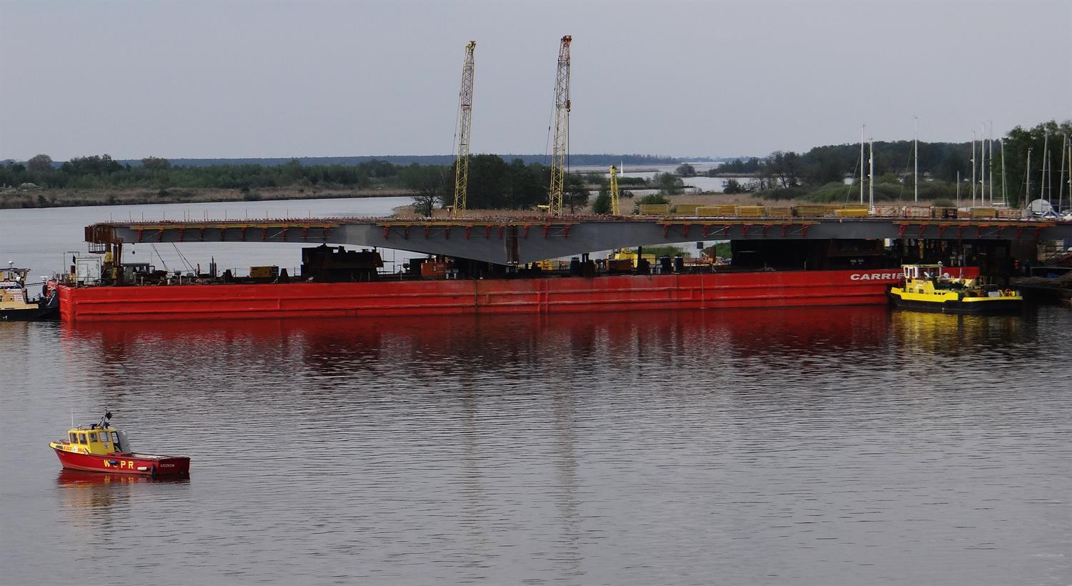 W czwartek wieczorem przypłynęły do Szczecina dwa przęsła nowego mostu, który budowany jest nad Regalicą. Olbrzymie konstrukcje o długości 100 i szerokości 14 metrów. W piątek rozpoczęły się pierwsze prace związane z przygotowaniem do montażu. Trwały one także cały weekend.
