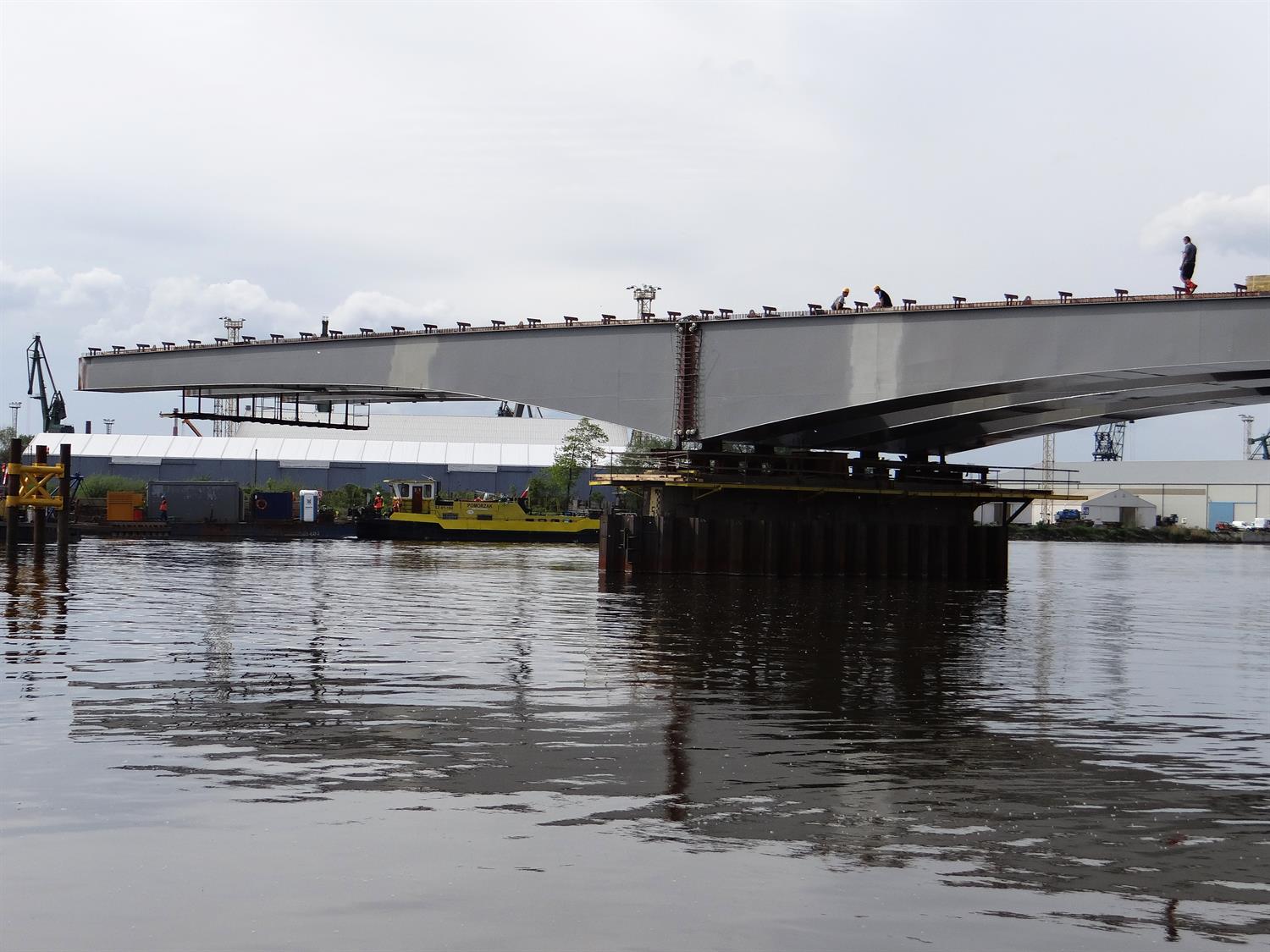 Tempo robót wskazuje, że do końca tego tygodnia oba elementy, sprowadzone przez Bałtyk z gdyńskiej wytwórni wykonawcy inwestycji spółki Vistal, będą na swoim miejscu. Cała operacja rozpoczęła się w miniony weekend. Po nasunięciu obu na filary rozpocznie się ich zespalanie.