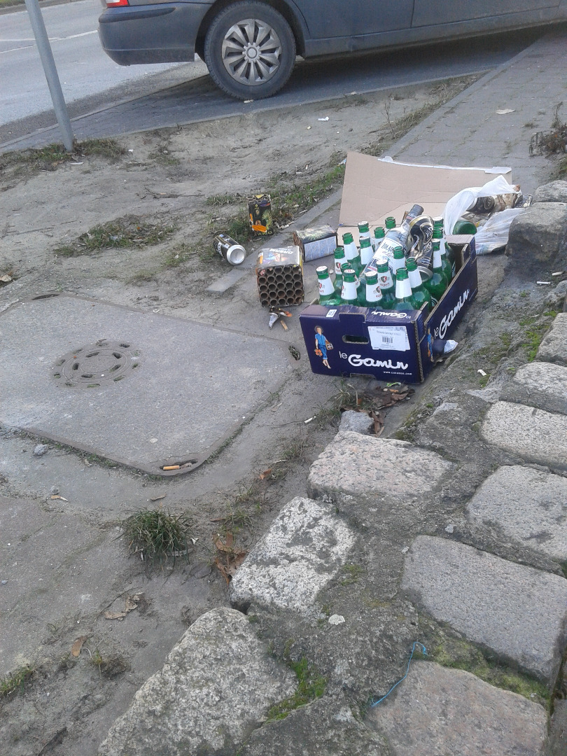 Problem z posylwestrowymi pozostałościami rzuca się w oczy nie tylko w centrum miasta: puste butelki, opakowania po fajerwerkach i zimnych ogniach czy inne śmieci walają się praktycznie we wszystkich szczecińskich dzielnicach, na chodnikach i co gorsza – na jezdniach.