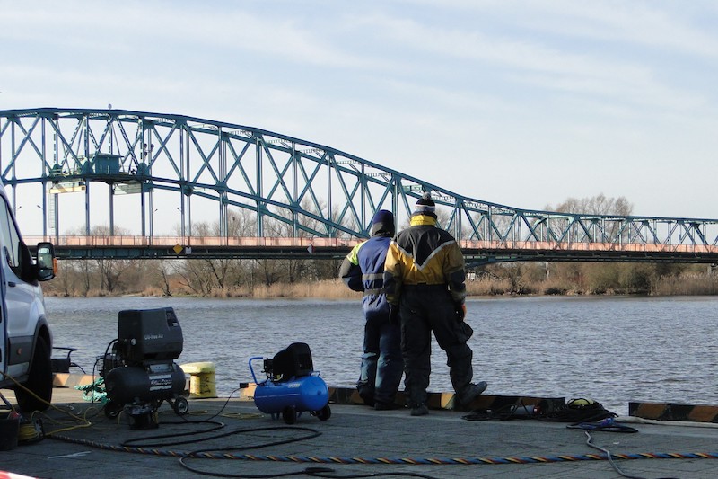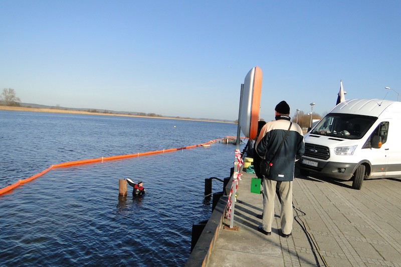 W czwartek rano zrobiono próbę szczelności przedniej części barki. Okazało się, że wpompowane powietrze uchodziło w dwóch miejscach; podjęto więc kolejne prace związane z uszczelnianiem osiadłej na głębokości 6 metrów barki.