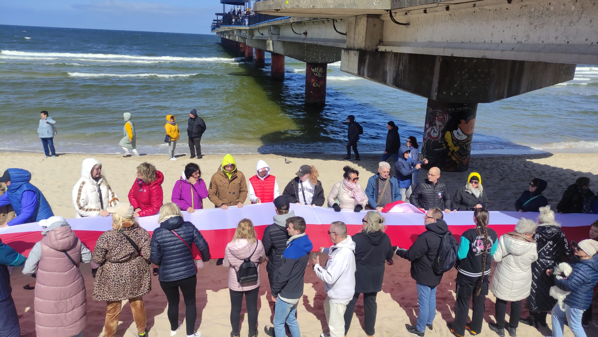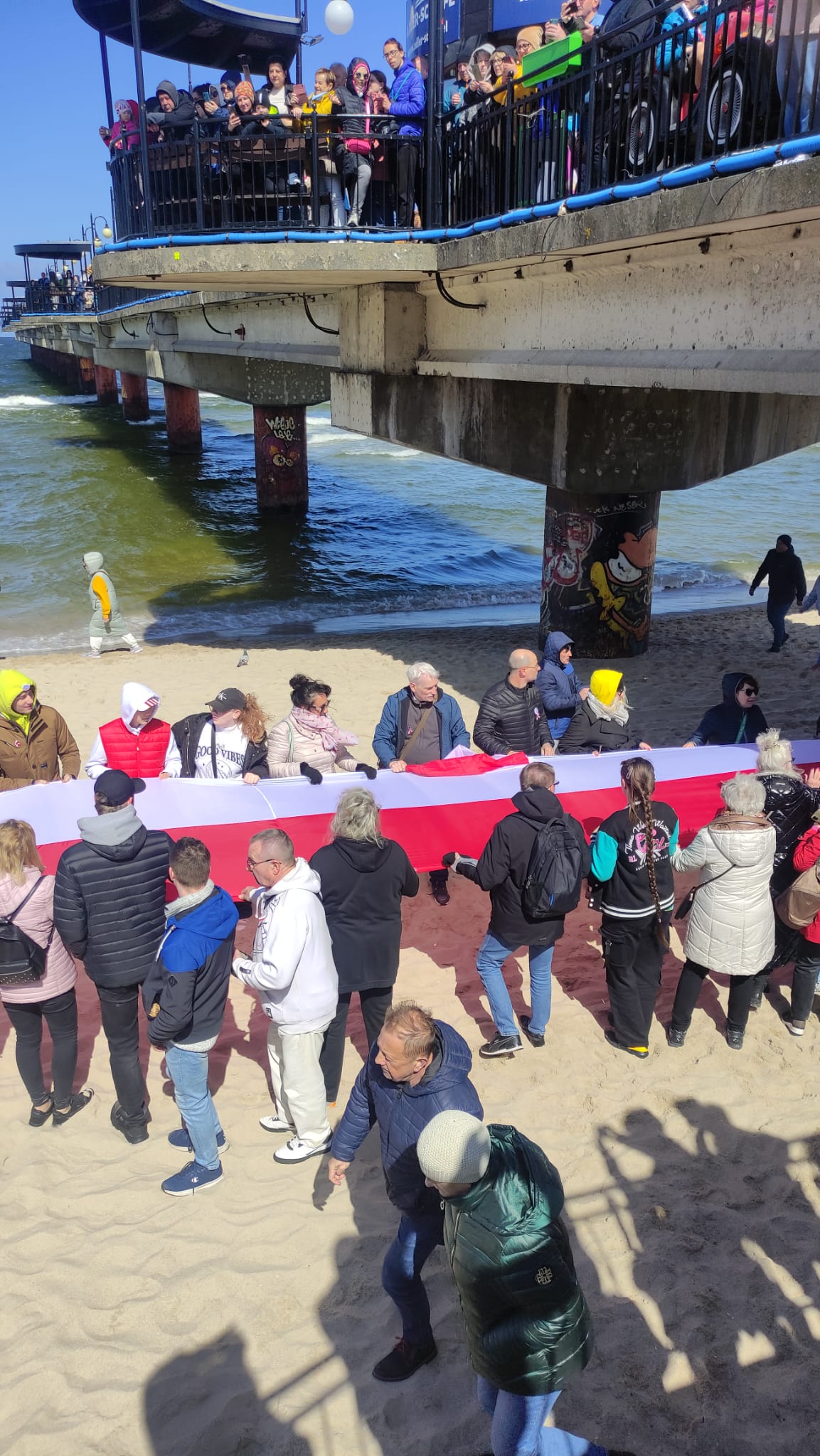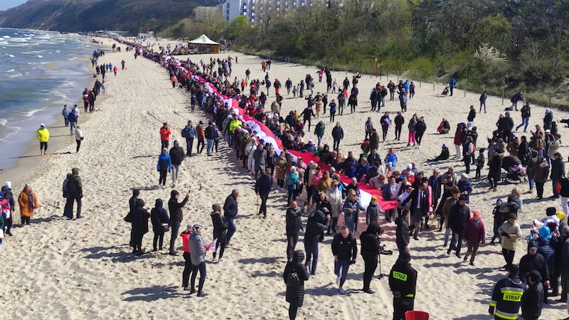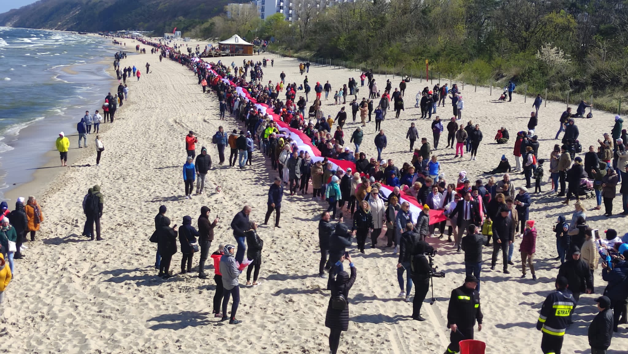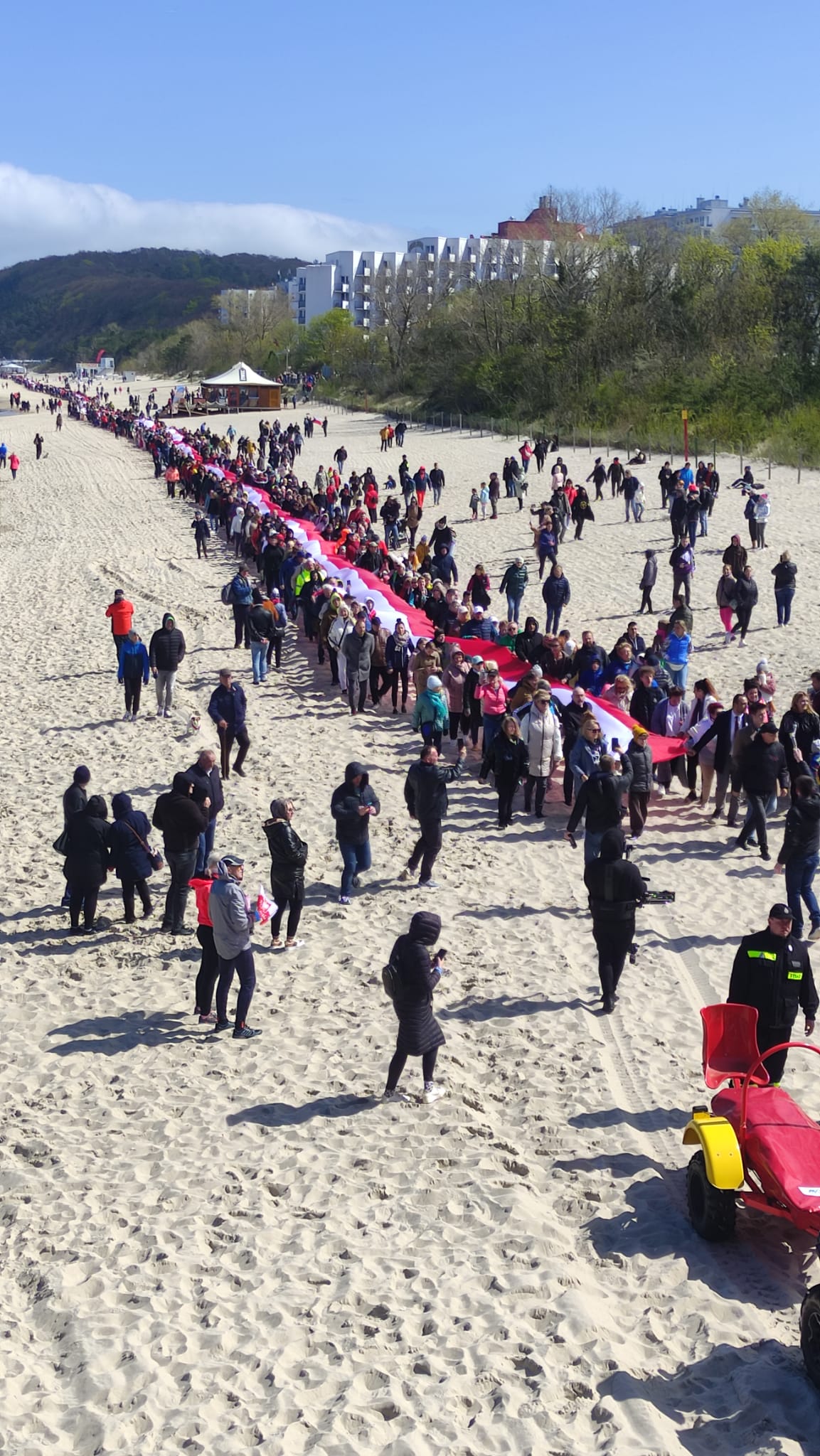 W Międzyzdrojach sukcesem zakończyła się próba pobicia rekordu Polski na najdłuższą flagę narodową. Ta rozciągnięta we wtorek miała w sumie 2,5 kilometra długości. Na plażę została wniesiona w dwóch częściach.