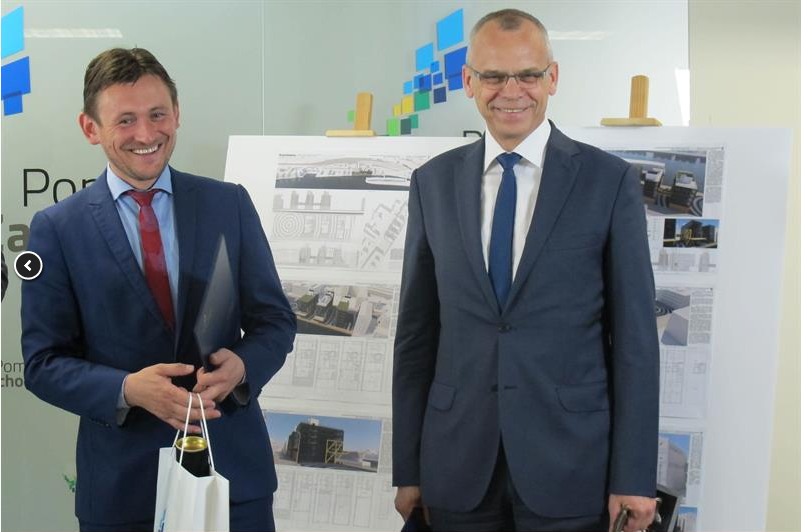 Na zdjęciu: Burmistrz Karlina Waldemar Miśko (z prawej) chwilę przed odebraniem wyróżnienia w konkursie na najlepszą przestrzeń publiczną województwa zachodniopomorskiego.