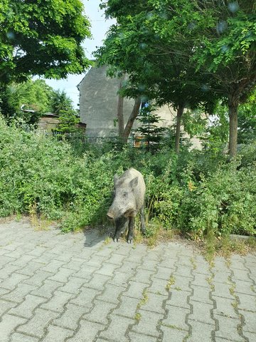 Po niedawnej wizycie rodziny dzików na szczecińskich Jasnych Błoniach sporo mówi się ostatnio o odwiedzinach tych leśnych przybyszów w mieście. We wtorek jeden z nich około godz. 16 pojawił się w rejonie ulic Sarniej i Jemiołowej na Warszewie.