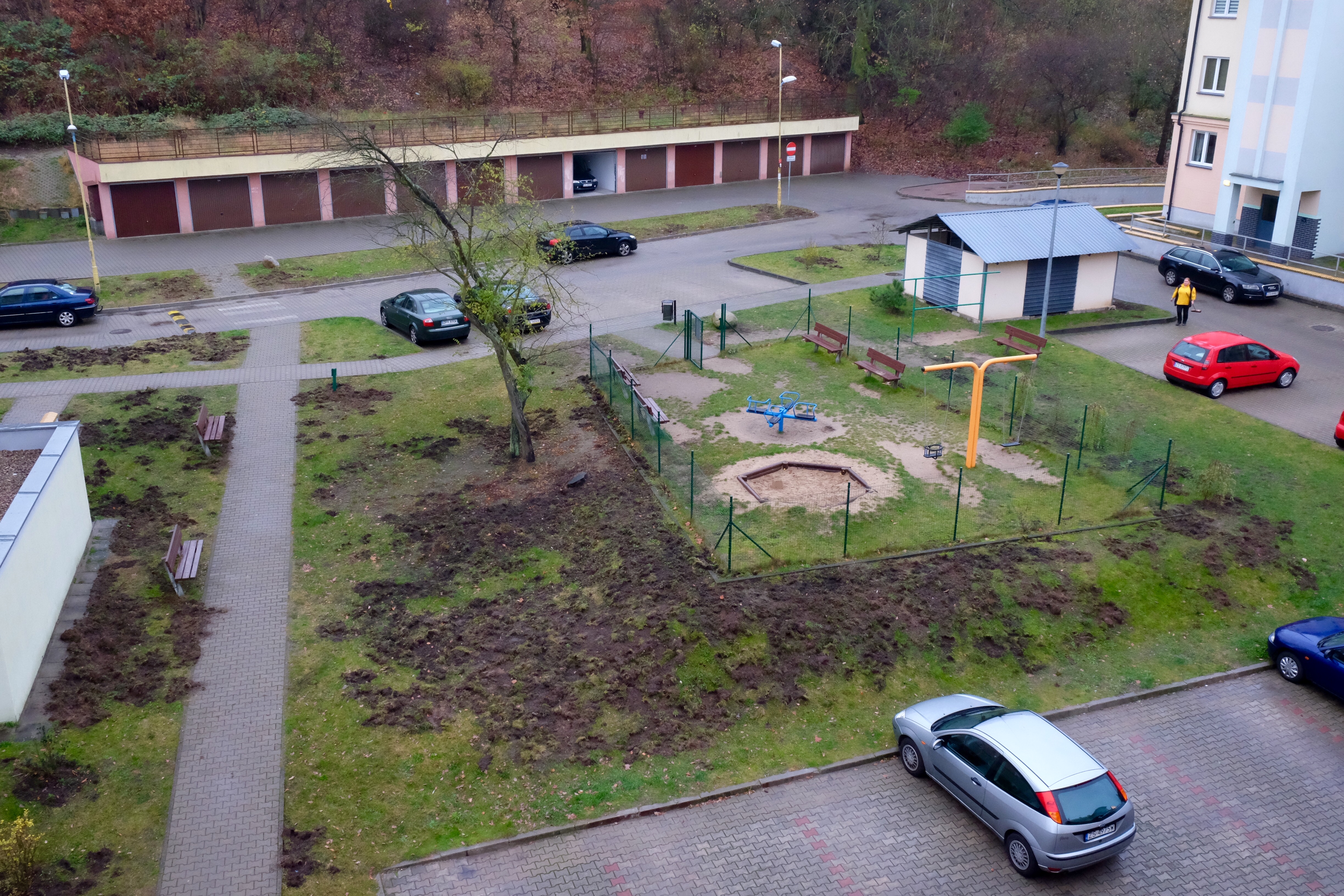To już prawdziwa plaga. Dziki zniszczyły prawie cały trawnik na osiedlu w Podjuchach. Jeszcze tylko płot przy placu zabaw dla dzieci i zdewastują wszystko - skarży się jeden z mieszkańców osiedla.