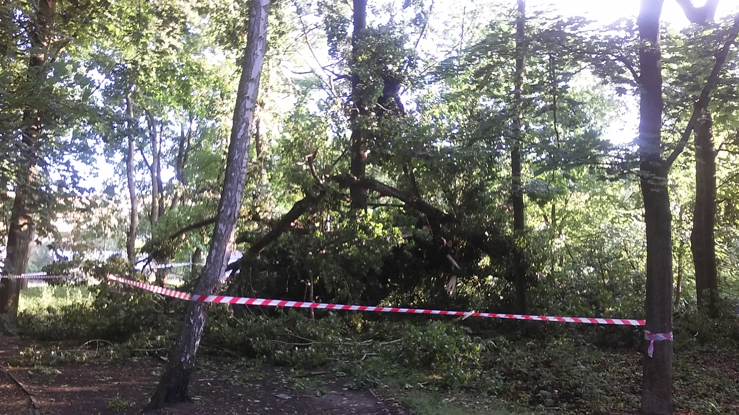 Dobrze, że służby ogrodziły to miejsce taśmą i mam nadzieję, że szybko uporają się z usunięciem powalonego drzewa. Problem jest jednak szerszy, bo prawie po każdej większej wichurze w parku padają stare, wielkie drzewa. Jego drzewostan coraz mocniej się przerzedza i w niektórych miejscach park świeci już pustkami.