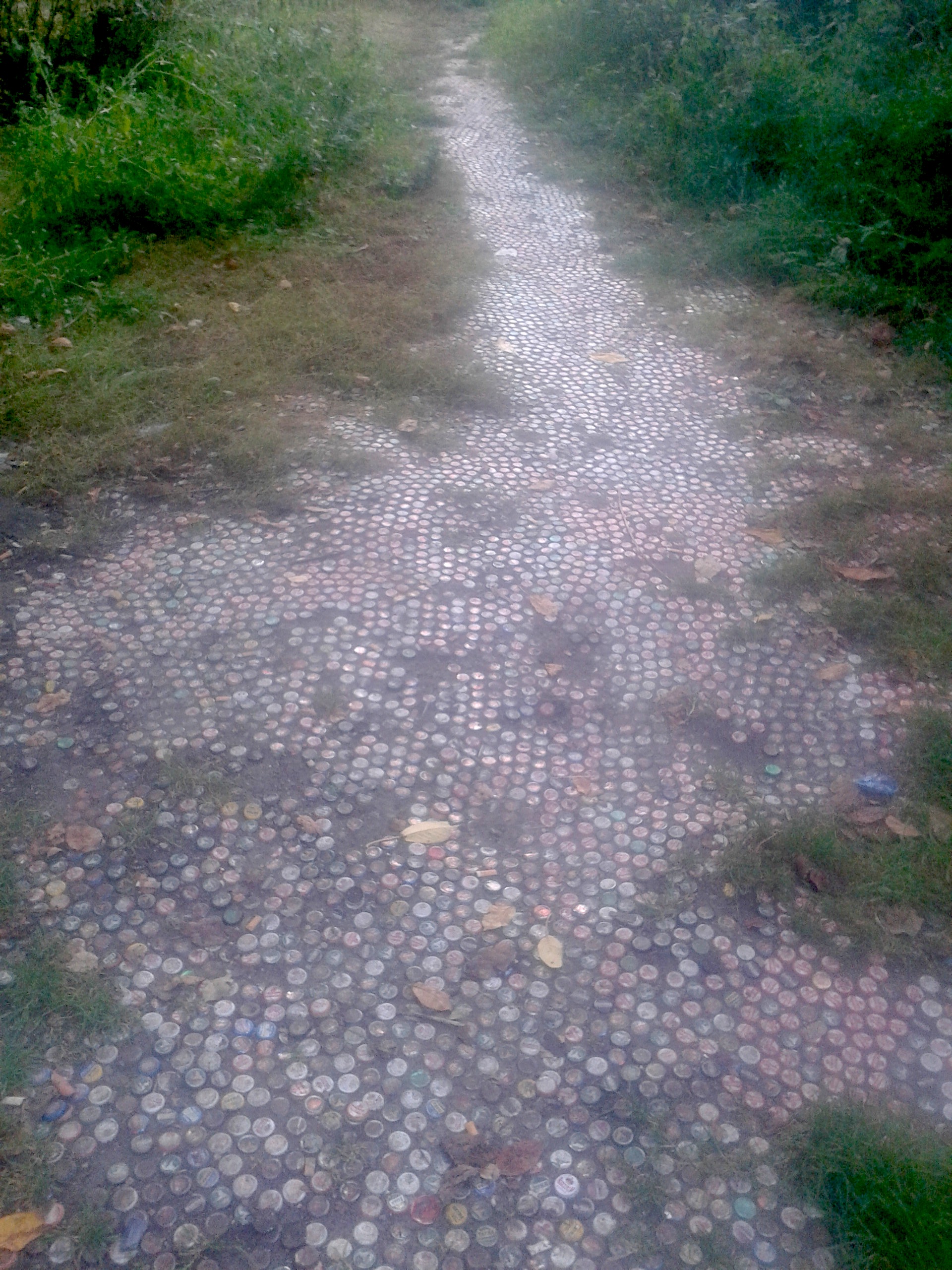 Napisał do nas Internauta Remigiusz, który wypatrzył w okolicach ulicy Światowida 89 w Szczecinie pewną osobliwość: „To miejsce spotkań okolicznych piwoszy. Ktoś wpadł na pomysł wybrukowania kapslami dojścia do ławeczki, na której piją oni piwo. Większość po szczecińskim Bosmanie. To pomysł na lokalny patriotyzm”.