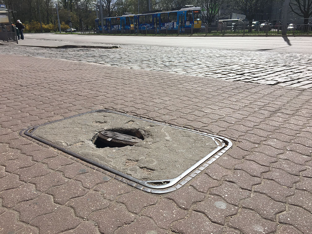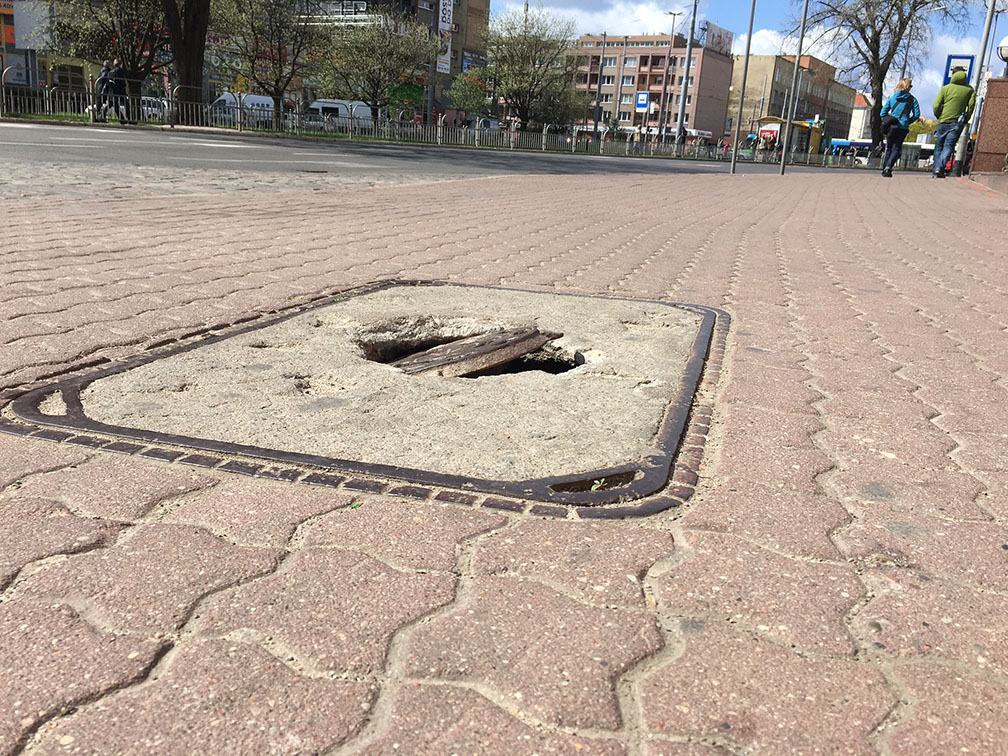 Napisał do nas Internauta Piotr: "Na placu Rodła w Szczecinie, tuż przy pętli autobusowej linii m.in. 107 od kilku tygodni straszy dziura w studzience. Nie trzeba wiele, by potknąć się o wystający metalowy element. Wystarczy chwila nieuwagi, zagapienia. Zwłaszcza w godzinach szczytu, gdy na pętli panuje tłok łatwo o nieszczęście. Polecam miejsce uwadze służb miejskich, które - jak widać - problemu nie widzą. Informację wysłałem także przez promowaną ostatnio aplikację Alert Szczecin. Może teraz coś się zmieni?".