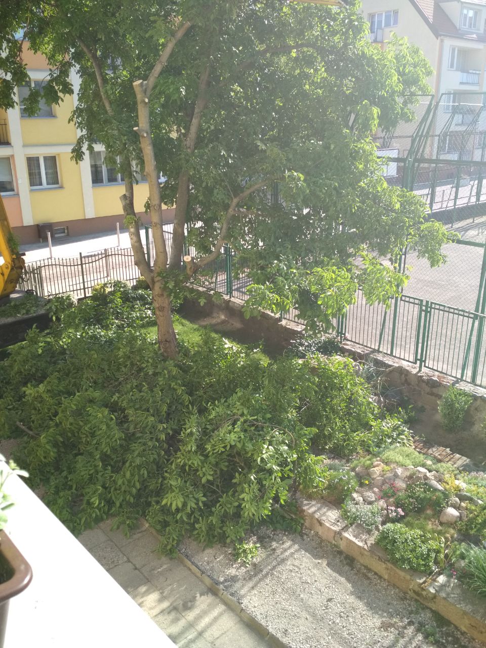 W środę ok. godz. 8.30 pojawili się pilarze i z podnośnika ścięto sporą gałąź. Drzewo wygląda na zdrowe, nie zagrażające bezpieczeństwu pieszych, dlatego dziwią mnie te znaczne cięcia.