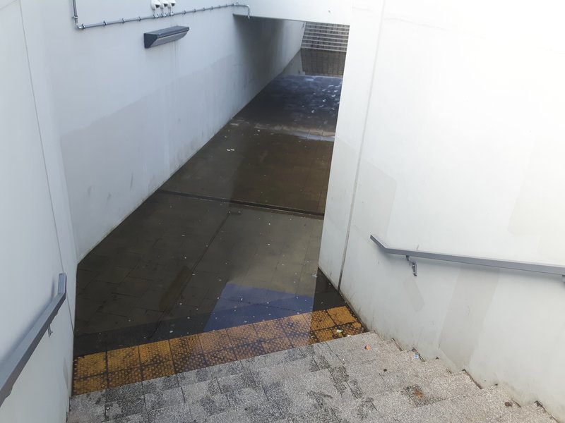 Przez przejście podziemne na Turkusowej suchą nogą się nie przejdzie... odpływy kompletnie nie działają. Co będzie się działo dopiero po większych deszczach. Kolejny bubel konstrukcyjny w szybkim tramwaju?