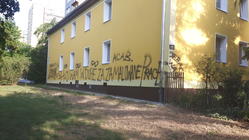 Wal sie na cycki Waldus,duzo sie zmienilo na dzielnicy,nie jestes stad to ryj.Na nieszczescie graficiarza tam mieszkaja fajni ludzie i nie chcial bym byc w skorze pajaca jak go namierza.