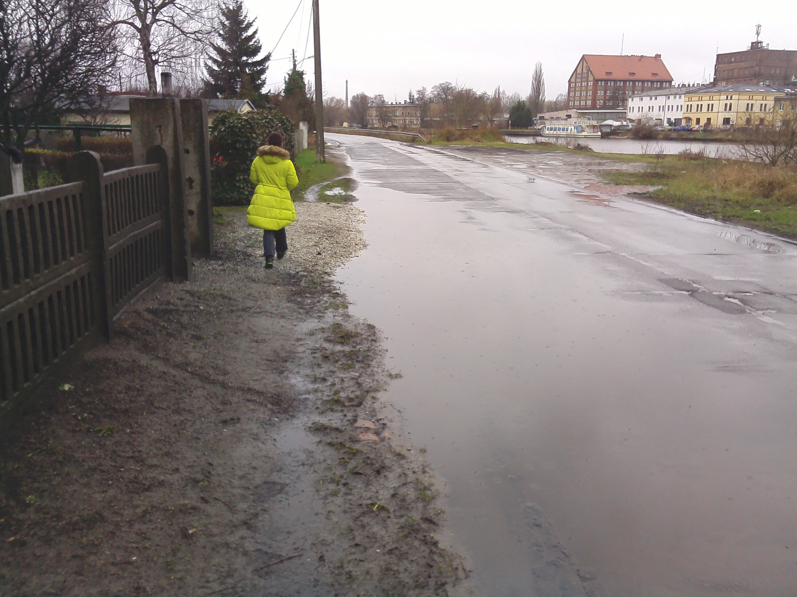 Z braku chodnika, w takie dni jak dzisiaj, pokonanie nawet kilkudziesięciu metrów to nie lada sztuka. Mieszkańcy nie mają do dyspozycji takiego komfortu, jak chodnik. Brodzą więc po kałużach, narażeni są też na ochlapywanie przez przejeżdżające pojazdy. Często - jak twierdzi Czytelniczka - z nadmierną prędkością.