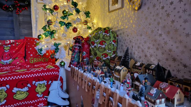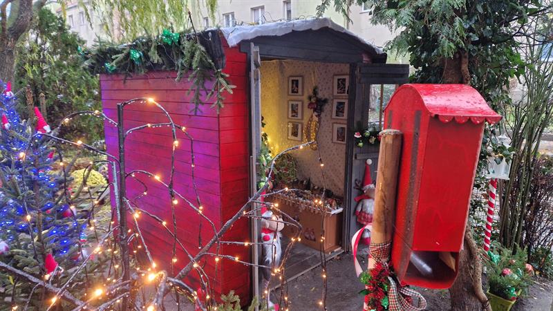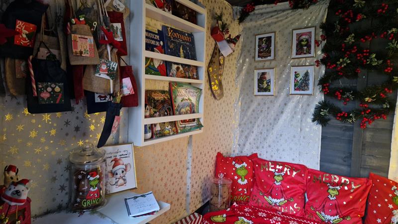 W tym roku motywem przewodnim jest Grinch - zielony, antypatyczny bohater kreskówek i filmów dla najmłodszych, który znany jest z tego, że nie lubi Bożego Narodzenia. Za każdym razem stara się zrobić wszystko, aby te święta popsuć. W domku są zatem poduszki, koc, worki na prezenty i inne gadżety z wizerunkiem tej postaci. Ponadto, w środku stoi oczywiście udekorowana choinka, są książeczki dla dzieci, mała sofa, na której dzieciaki mogą przysiąść, makieta z zabawkami, dekoracje. Wszystko wygląda bardzo przytulnie i klimatycznie. Jednak najważniejszą częścią świątecznej dekoracji przy ul. Styki jest skrzynka na listy do św. Mikołaja.