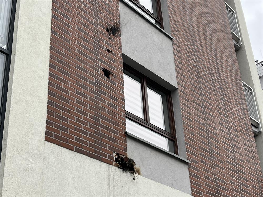Jak już informowaliśmy do niebezpiecznego zdarzenia doszło w sylwestrową noc. Odpalone fajerwerki wbiły się w elewację budynku, w której wypaliły głębokie dziury. Na miejscu interweniowała straż pożarna.