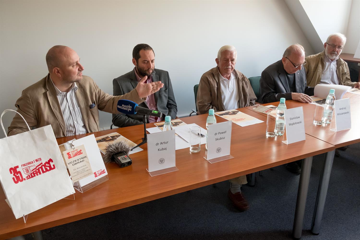 Na zdjęciu: O narodzinach szczecińskiej demokracji mówili (od lewej): dr Artur Kubaj, dr Paweł Skubisz, Stanisław Wądołowski, Andrzej Milczanowski i Leszek Duklanowski.