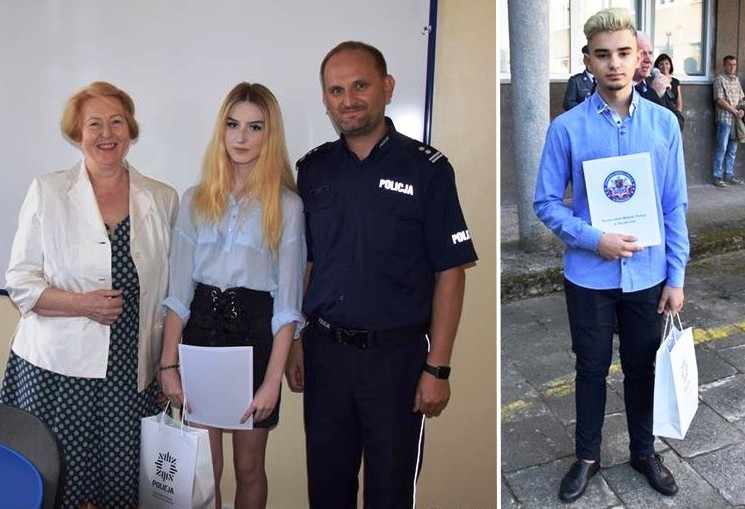 Komendant Miejski Policji Piotr Makuch wraz z zastępcą mł. insp. Andrzejem Biernatem podziękowali Kornelii i Kamilowi za wzorową, obywatelską postawę oraz dojrzałe zachowanie. Nastolatkowie otrzymali także drobne upominki.