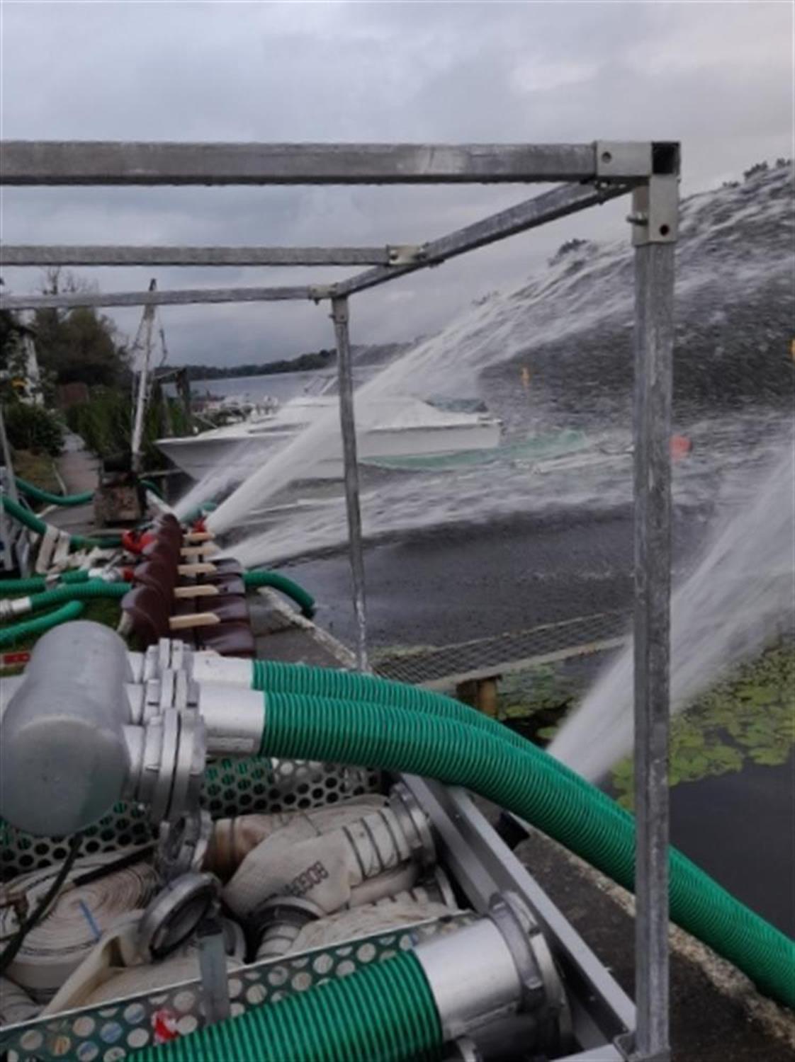 Do wtorku pracowały jeszcze cztery pompy, które punktowo natleniały wodę w Odrze przy ul. Bydgoskiej na szczecińskich Pomorzanach. Fot. Bogdan SUBOCZ