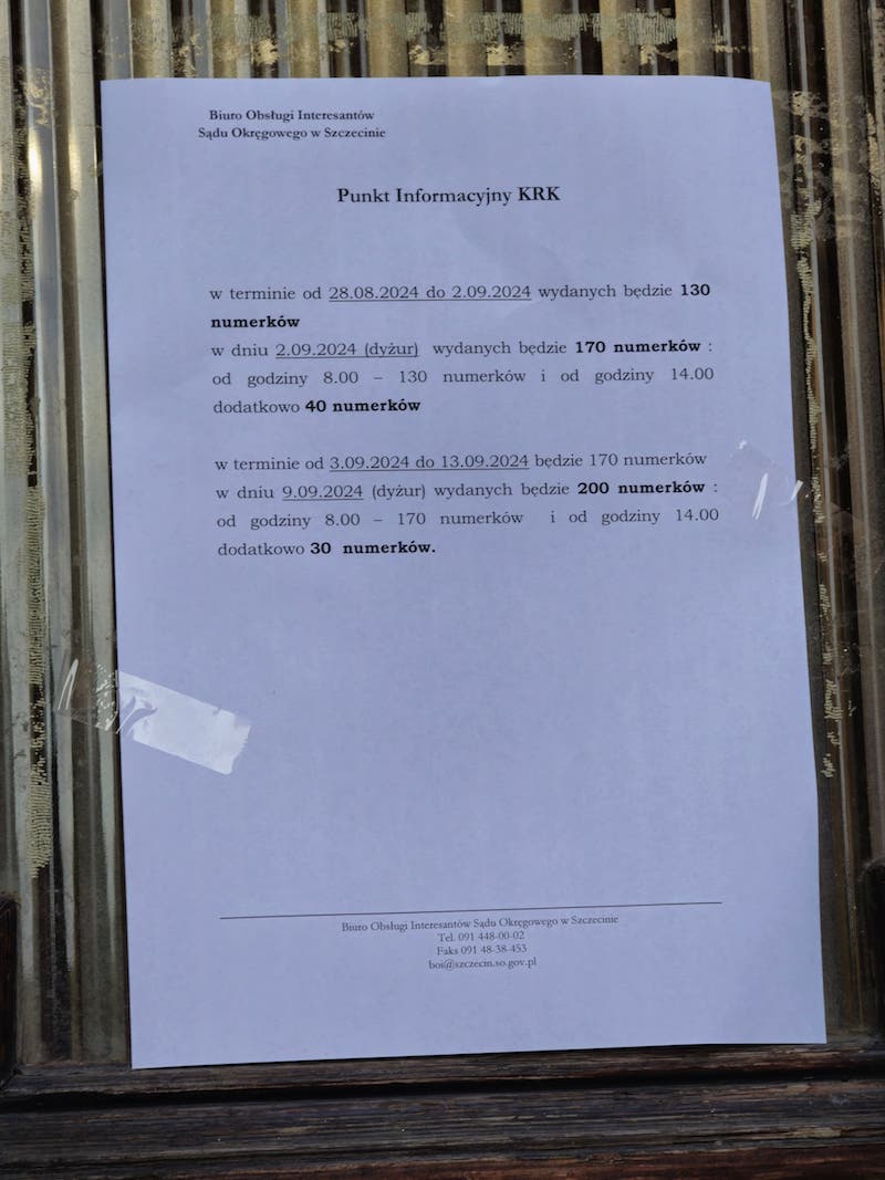 Zamiast układać plany lekcji na nowy rok szkolny, uczestniczyć w radach pedagogicznych i ostatnich przed nowym rokiem szkolnym spotkaniach, nauczyciele utknęli... przed sądem przy ul. Kaszubskiej w Szczecinie. Pierwsi ustawiają się w kolejkę już po godz. 4. licząc, że dostaną zaświadczenie o niekaralności. To obecnie wymóg wynikający z Ustawy o standardach ochrony małoletnich, czyli tzw. ustawy Kamilka. Świadectwo niekarności muszą przedstawić wszyscy ci, którzy pracują z dziećmi.