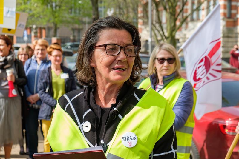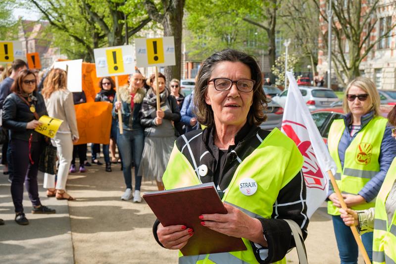 - Wzywamy rząd do podjęcia poważnych rozmów. We wtorek w Warszawie odbyła się wielotysięczna manifestacja. Czy ktoś wyszedł do nauczycieli? Pani minister ma nas w bardzo głębokim poważaniu - mówiła Maria Świerczek, która następnie w imieniu strajkujących nauczycieli weszła do urzędu i przekazała pismo adresowane do wojewody Tomasza Hinca. Odebrał je Paweł Rodzoś, dyrektor Wydziału Bezpieczeństwa i Zarządzania Kryzysowego UW tłumacząc, że wojewoda jest na spotkaniu z ważnymi gośćmi, jakimi są prezydent i premier. - Głowa państwa i premier to ważne osoby, ale grupa trzech tysięcy osób strajkujących w Szczecinie też powinna być ważna, aby chociaż wicewojewoda nas przyjął, ale dziękujemy, że zrobił to pan - powiedziała Maria Świerczek.