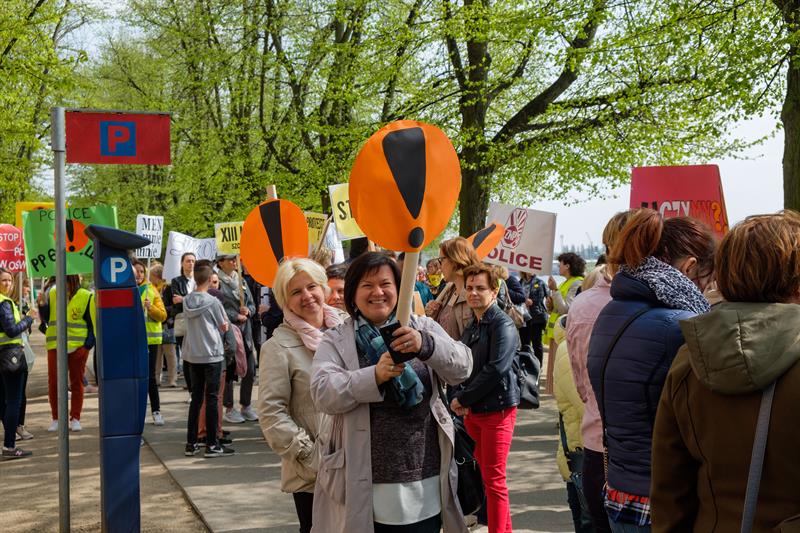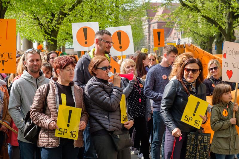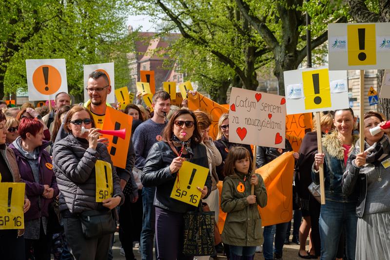 To obstrukcja ze strony rozpolitykowanych nauczycieli. Zamiast przygotowac zespol na okragly stol chodza po miescie niby strajkujac