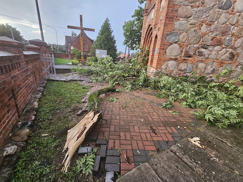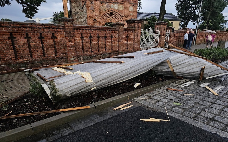 Nawałnica szkody wyrządziła m.in. w Kluczewie, dzielnicy Stargardu. Zerwała tam linię energetyczną, fragment blachy z dachu w tamtejszym kościele, połamała drzewa i konary.
