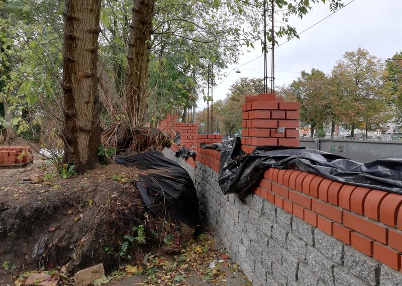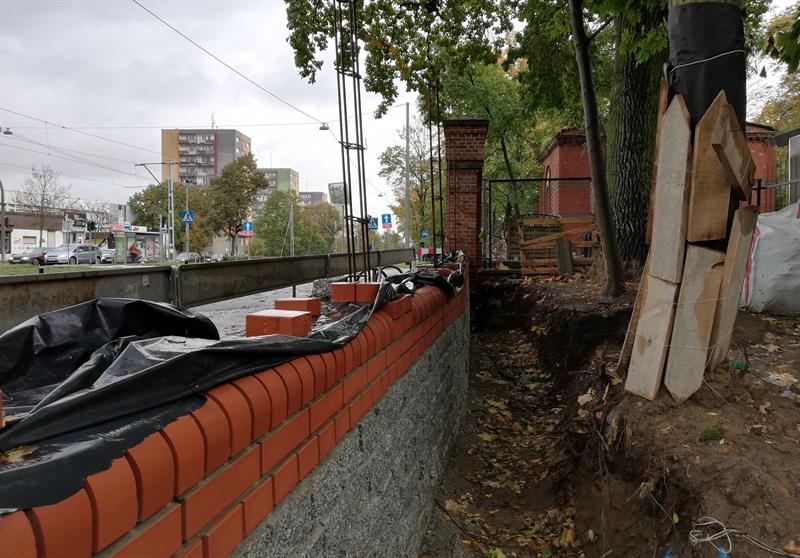 Do tej pory, zgodnie z programem konserwatorskim oraz projektem budowlanym, rozebrano stare ogrodzenie na odcinku od II bramy w stronę Salezjan, zdemontowano stalowe przęsła między słupami 68-105, a dla przebudowy muru wokół nekropolii - także rozbiórkę nawierzchni chodnika od strony ulicy. Część nowego ogrodzenia jest już wymurowana. Jednak prace za II bramą, czyli na wysokości dawnej chłodni i dalej - w stronę Głównej - są znacznie mniej zaawansowane. Nawet nie usunięto starych podmurówek pod rozebranymi słupami ogrodzenia. Niezbędnej niwelacji terenu nie widać.