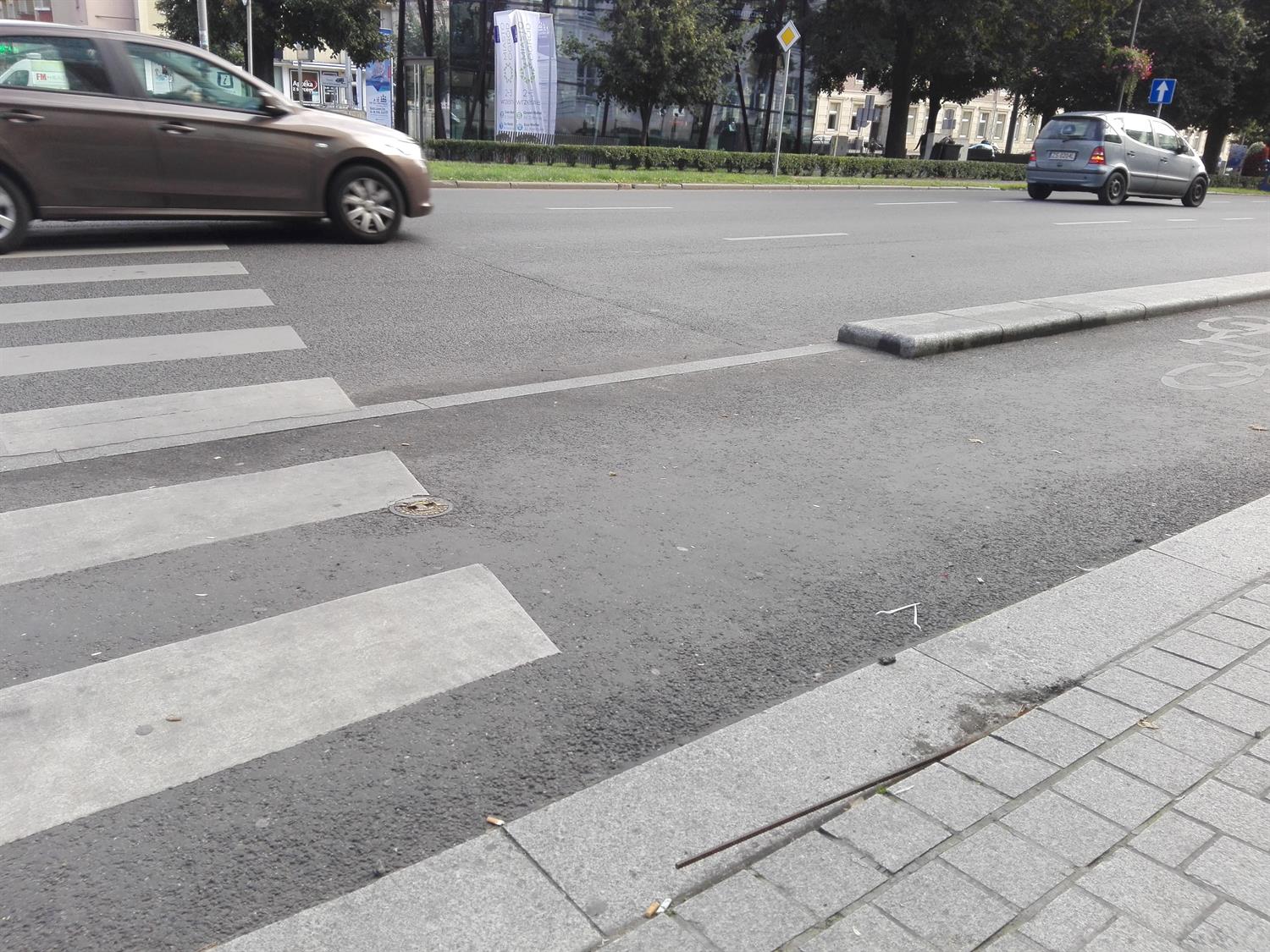Jest twardy, stalowy, mierzy około pół metra i jest nie do wyjęcia, ani też zdarcia. Do tego wystaje ponad nawierzchnię traktu - ów stalowy pręt zbrojeniowy - tuż przy przejściu dla pieszych na pl. Żołnierza Polskiego. Łatwo o niego zahaczyć: potknąć się, uszkodzić but, zranić stopę. Szczególnie po zachodzie słońca, gdy staje się niemal niewidoczny, optycznie zlewając z fugą chodnika. Niby nic, a jednak niebezpieczna pułapka, którą miejskie służby powinny zabezpieczyć i usunąć. Jak najszybciej, zanim ktoś ucierpi.