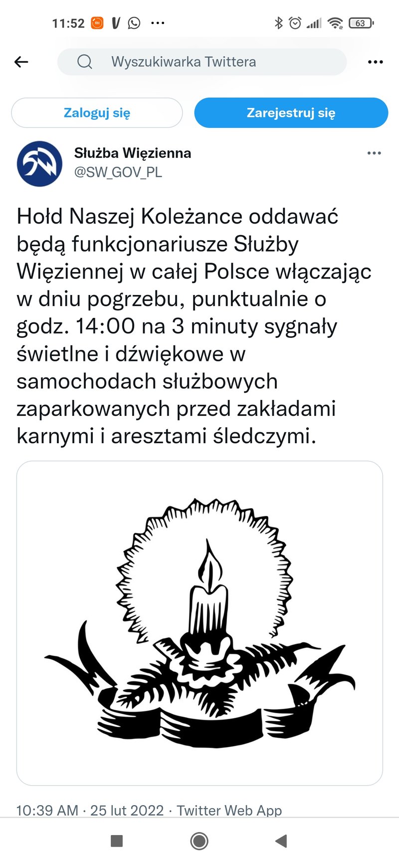 Z kolei na Twitterze wyjaśnienie napisali przedstawiciele Służby Więziennej: "Hołd Naszej Koleżance oddawać będą funkcjonariusze Służby Więziennej w całej Polsce włączając w dniu pogrzebu, punktualnie o godz. 14:00 na 3 minuty sygnały świetlne i dźwiękowe w samochodach służbowych zaparkowanych przed zakładami karnymi i aresztami śledczymi".