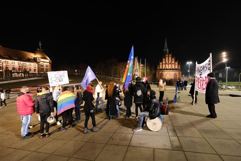 “Nie będziemy wam po(d)ręczne! To jest wojna!” - pod takim hasłem w sobotę na placu Solidarności w Szczecinie zebrała się grupa mieszkańców, która zamanifestowała swoją solidarność w walce o prawa kobiet.