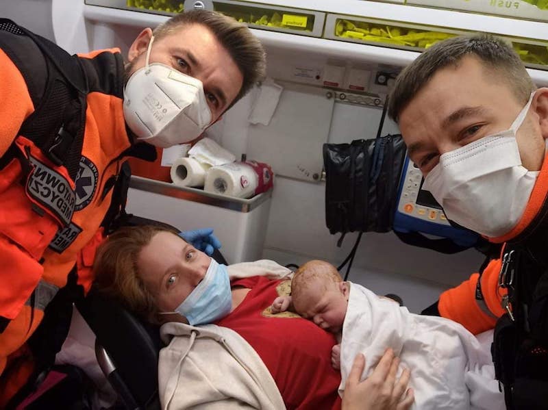 Ratownicy medyczni mieli przewieźć rodzącą kobietę do szpitala, ale... spieszący się na świat Kacperek postawił własne warunki - urodził się w karetce. I dostał "dziesiątkę".