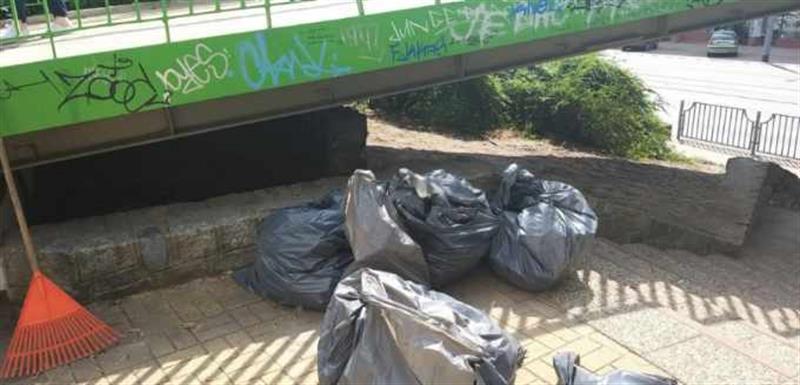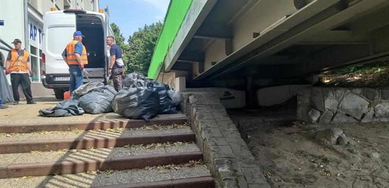 Zanieczyszczony odchodami teren, z cuchnącymi legowiskami z gnijących materaców, stertą śmieci i pustych butelek po alkoholu - tak wyglądało koczowisko osób bezdomnych pod kładką przy ul. Wyszyńskiego w Szczecinie. Zostało usunięte i posprzątane.
