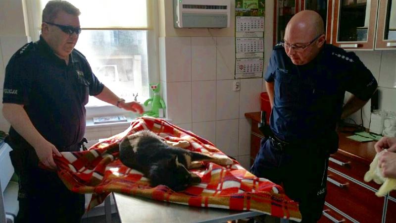 Szybka decyzja dzielnicowych z gminy Biesiekierz prawdopodobnie uratowała życie czworonoga.