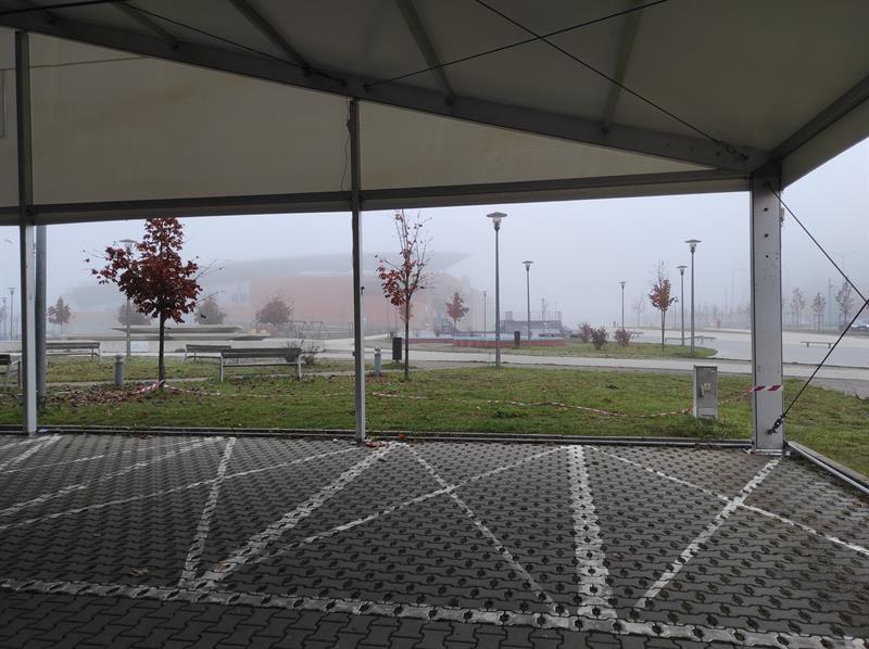 Jak informowaliśmy w niedzielę, namiot postawiono na parkingu – nieco z boku hali widowiskowo-sportowej Netto Arena. Nie spodobało się to jednemu z mieszkańców pobliskiego osiedla, który – podobnie jak inni – parkował tam swoje auto. Przypomniał on, że w poprzednich latach wiatę na ślizgawkę montowano na placu przed halą. Decyzję o budowie namiotu na parkingu w pobliżu fontanny nazwał „niefortunną”, gdyż brakuje miejsc postojowych dla samochodów. Problem nasila się, gdy w Netto Arenie odbywa się jakaś impreza.