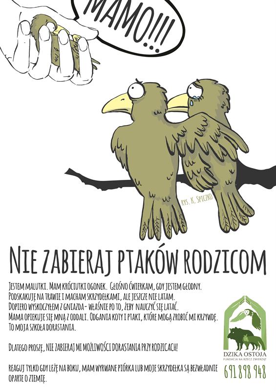 - W porywie serca, niestety bezmyślnie, pozbawiają je tej opieki: porywają dla rzekomego ratowania. Dlatego apelujemy: Nie zabieraj ptaków rodzicom! - przekonuje Marzena Białowolska, prezeska Fundacji na Rzecz Zwierząt „Dzika Ostoja".