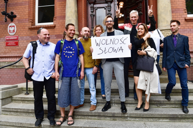 Sąd umorzył w piątek (31 maja) postępowanie prowadzone przeciwko Pawłowi Jackowskiemu oskarżonemu o publiczne znieważenie prezydenta RP podczas manifestacji w Nowym Warpnie. Wyrok został przyjęty oklaskami publiczności.