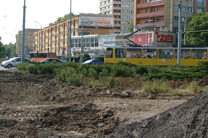 W Szczecinie trwa przebudowa części torowisk. Zieleń - jak zwykle - przegrywa z inwestycjami. Krzewy z pl. Żołnierza Polskiego (pas z dawnej alei kwiatowej) legły - w wykopie, zasypane ziemią - dosłownie u podstaw betonowej podbudowy pod szyny. Natomiast na pl. Rodła teraz w pełnym słońcu i pyle dogorywają dziesiątki różanych krzewów: bez kropli wody, przygniatane różnymi ciężkimi elementami budowlanymi. W epoce kryzysu klimatycznego to nie jest, niestety, budujący obrazek. Będzie zapewne (zieleń) do wymiany.