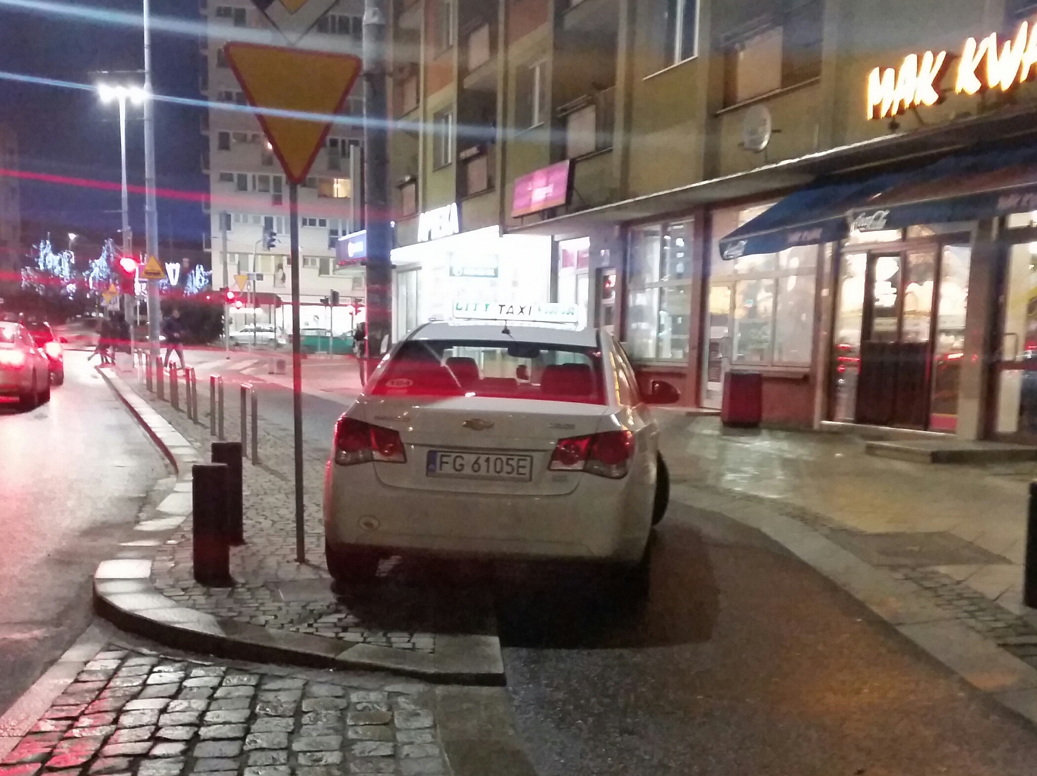 Taksówka na drodze dla rowerów w tym miejscu to niestety nie jest wyjątek. Ścieżka rowerowa przy pl. Żołnierza Polskiego jest notorycznie blokowana przez kierowców, którzy są przekonani, że nic się przecież nie stanie, jeśli zaparkują tu tylko na chwilę.