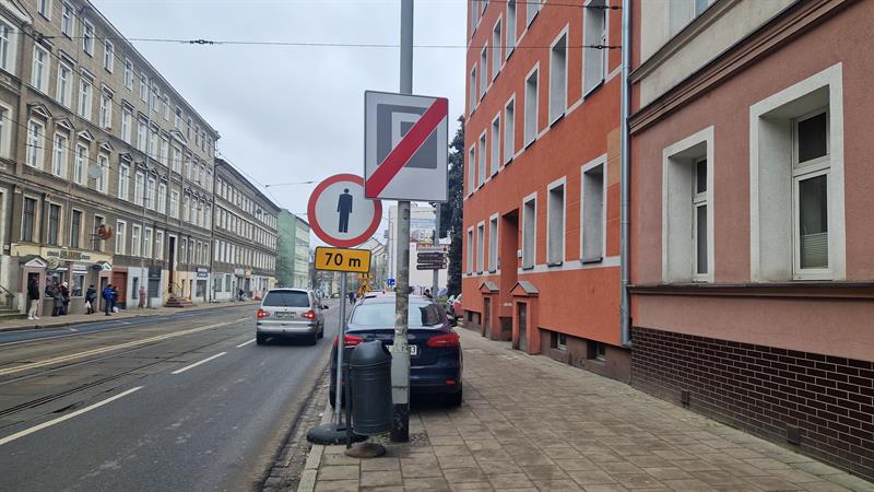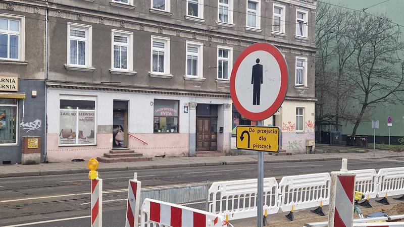 Informacje o pracach i kierunku poruszania się pieszych zamieszczone są na całym chodniku od ulicy Szarotki do ul. Dubois 12. Przechodnie wiedzą więc, że kilkadziesiąt metrów dalej prowadzone są prace i obowiązuje zakaz przejścia. W miejscu, gdzie prowadzony jest remont, znajduje się dodatkowo tabliczka ze strzałką nakazującą zawrócić do przejścia dla pieszych - czyli tego znajdującego się przed ul. Szarotki. Wielu przechodniów jednak to lekceważy, przechodząc wzdłuż ogrodzenia oddzielającego miejsce robót, po jezdni i stwarzając zagrożenie dla siebie, jak i innych uczestników ruchu drogowego.