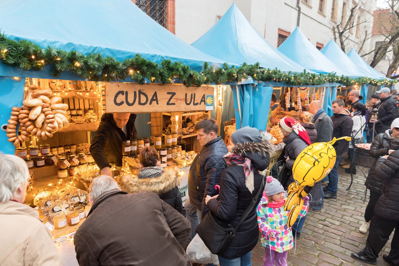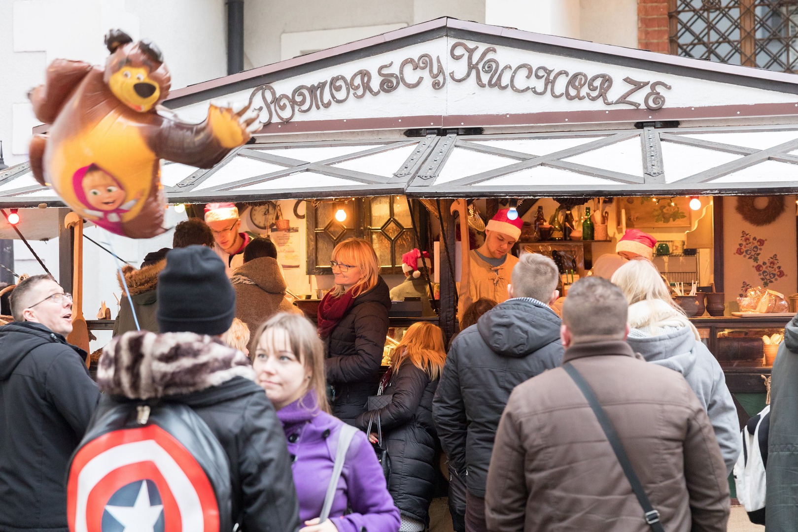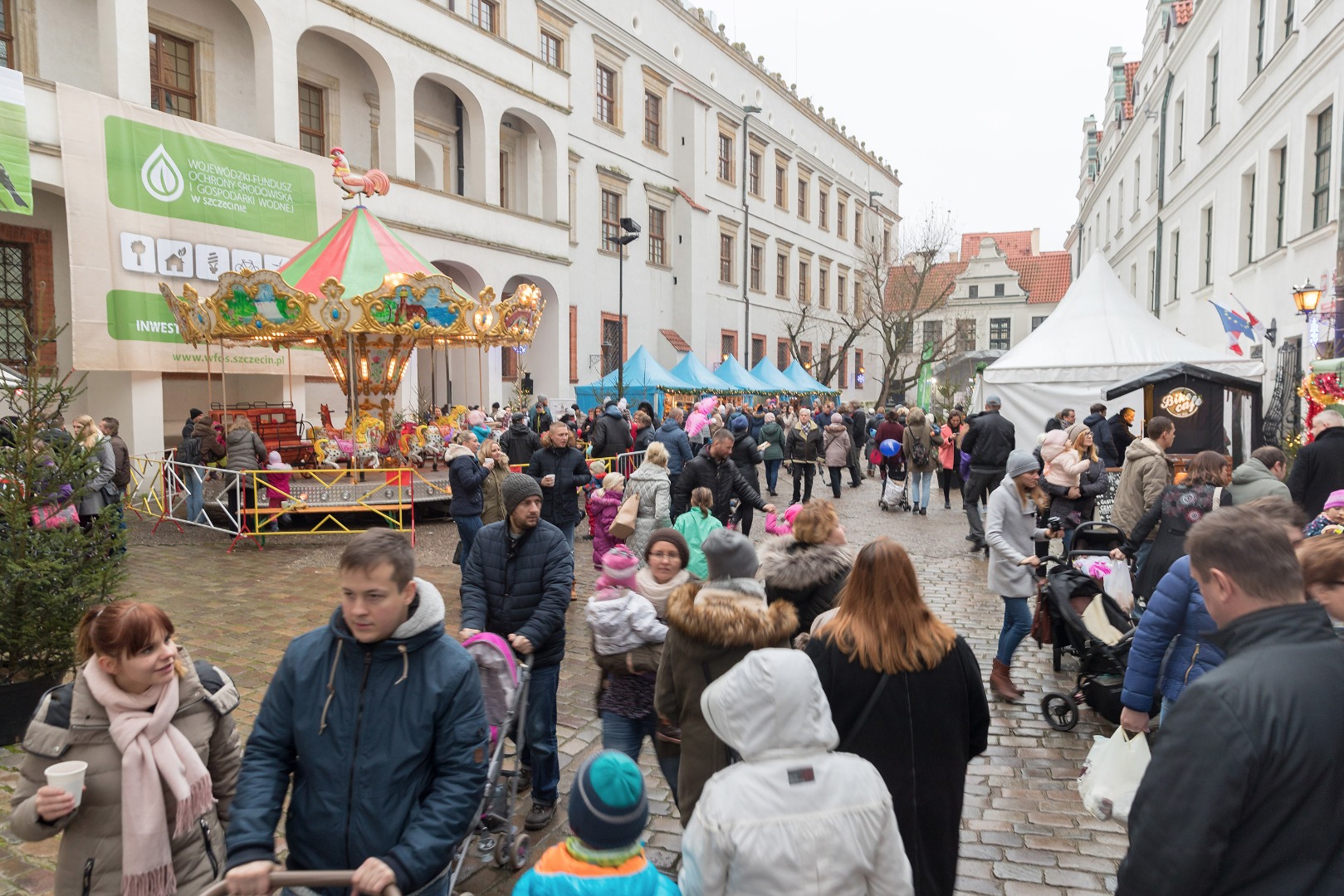 Ale dwudniowy jarmark na Zamku Książąt Pomorskich może być ciekawy również dla dorosłych. Na świątecznie przystrojonych straganach rozstawionych na zamkowych dziedzińcach można kupić produkty regionalne (ryby, mięsa, wędliny, sery, miody, pieczywo, słodycze...) oraz ręcznie wykonane ozdoby świąteczne. Wyjątkowe prezenty dla najbliższych są do nabycia w zamkowych salach - tam trwa kiermasz rękodzieła artystycznego. Można więc tam znaleźć ręcznie wykonane ozdoby choinkowe, wianki świąteczne, bombki, przytulanki, oryginalną biżuterię, witraże i wiele innych atrakcyjnych artykułów. Jest też coś do przekąszenia - przede wszystkim polecamy dania regionalne.